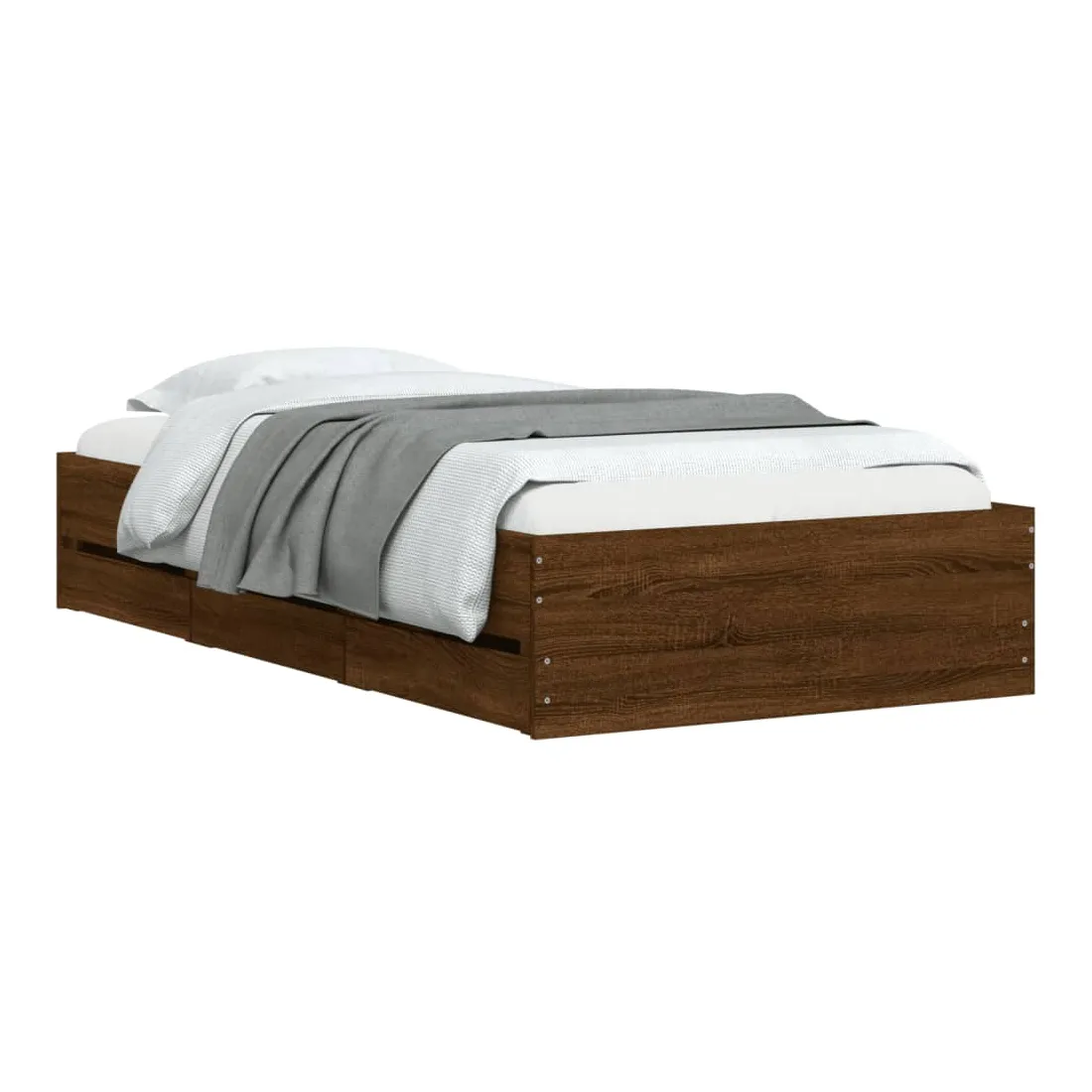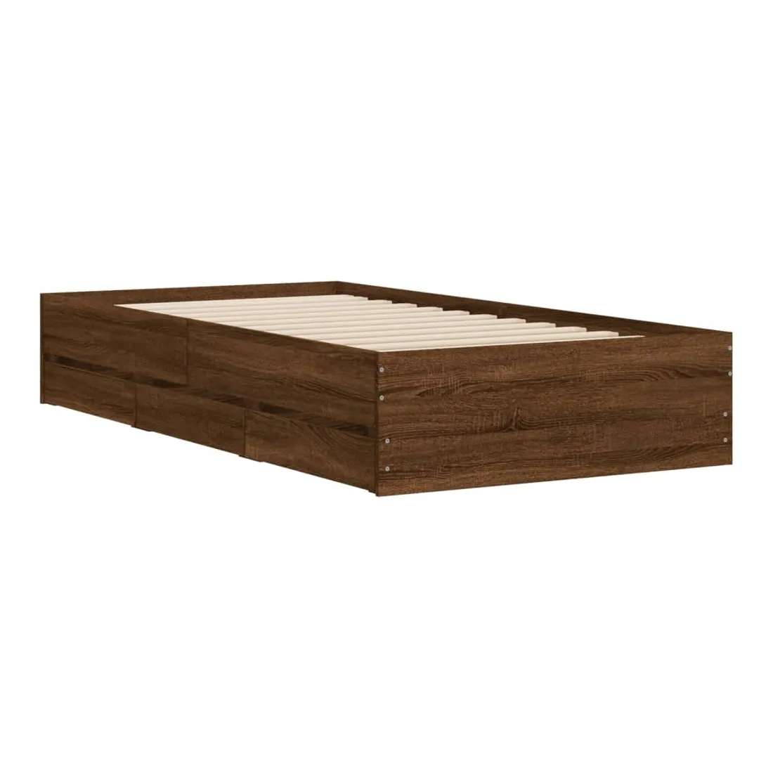 Ajoutez une touche moderne à votre chambre à coucher avec ce cadre de lit avec tiroirs ! Il apportera une touche pratique et décorative à votre espace de vie. Matériau durable : le cadre de lit est fabriquée en bois d'ingénierie. Le bois d'ingénierie est d'une qualité exceptionnelle avec une surface lisse et présente également de la résistance, de la stabilité et de la résistance à l'humidité.Lattes robustes : les lattes de contreplaqué assurent une bonne répartition du poids, garantissant que le matelas reste en place à chaque torsion de votre corps pendant le sommeil.Fonction de rangement : les tiroirs de lit inclus offrent suffisamment d'espace de rangement pour ranger vos articles essentiels, gardant votre pièce propre et bien rangée. Bon à savoir :Un matelas n'est pas inclus avec ce lit. Nous offrons une sélection variée de matelas. Vous pouvez consulter notre boutique pour trouver un matelas assorti.