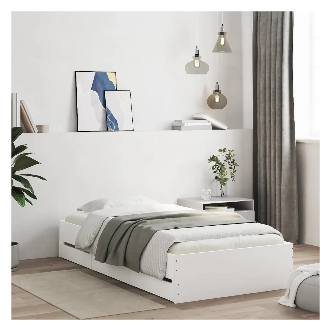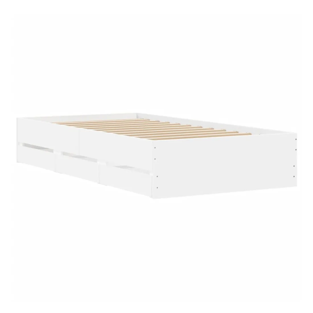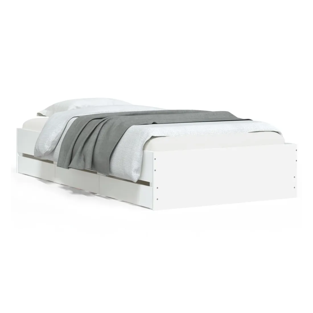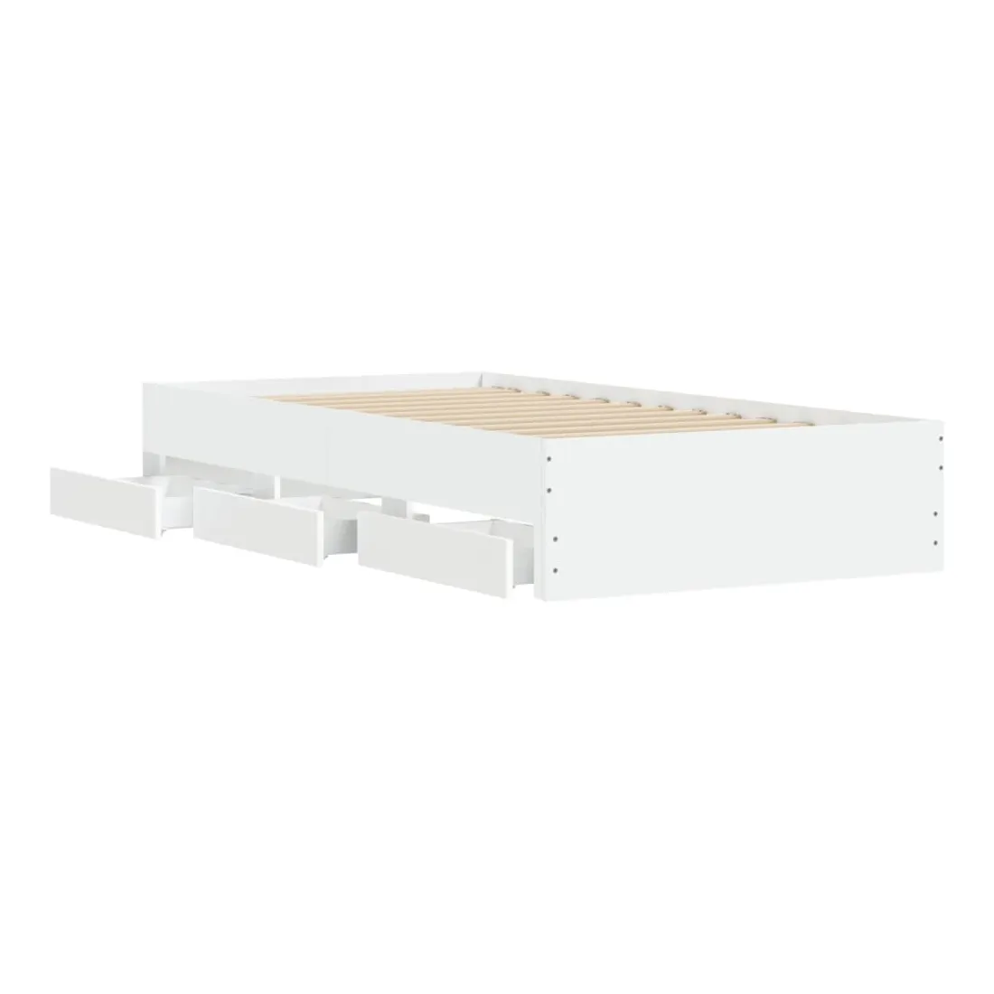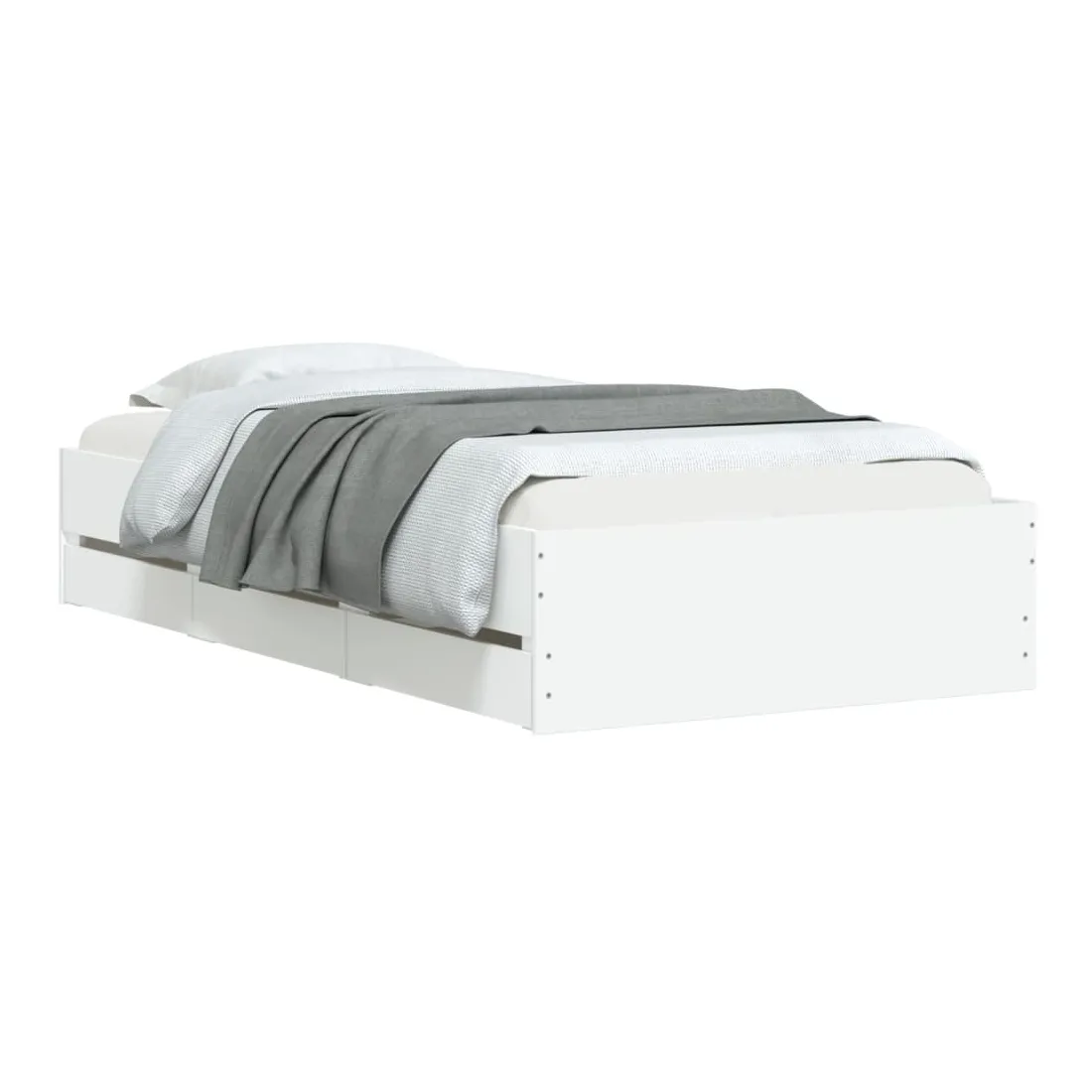 Ajoutez une touche moderne à votre chambre à coucher avec ce cadre de lit avec tiroirs ! Il apportera une touche pratique et décorative à votre espace de vie. Matériau durable : le cadre de lit est fabriquée en bois d'ingénierie. Le bois d'ingénierie est d'une qualité exceptionnelle avec une surface lisse et présente également de la résistance, de la stabilité et de la résistance à l'humidité.Lattes robustes : les lattes de contreplaqué assurent une bonne répartition du poids, garantissant que le matelas reste en place à chaque torsion de votre corps pendant le sommeil.Fonction de rangement : les tiroirs de lit inclus offrent suffisamment d'espace de rangement pour ranger vos articles essentiels, gardant votre pièce propre et bien rangée. Bon à savoir :Un matelas n'est pas inclus avec ce lit. Nous offrons une sélection variée de matelas. Vous pouvez consulter notre boutique pour trouver un matelas assorti.