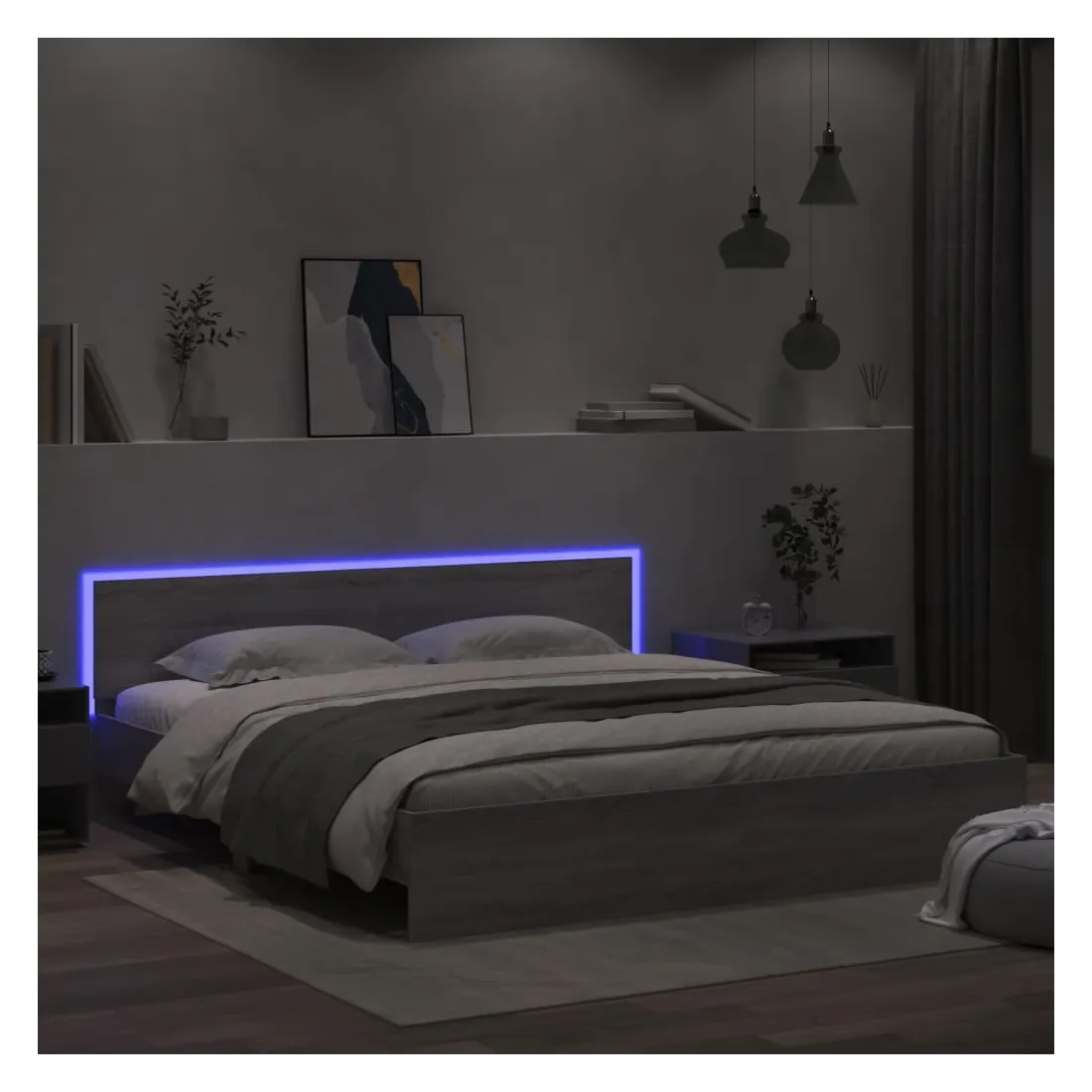 Obtenez une meilleure nuit de sommeil reposante grâce à ce cadre de lit avec LED ! Il est un supplément accueillant à toute chambre à coucher. Matériau durable : le bois d'ingénierie est d'une qualité exceptionnelle avec une surface lisse et présente également résistance, stabilité et résistance à l'humidité.Lumières LED RVB : le lit est équipé de lumières LED RVB vibrantes. Avec divers menus personnalisables, vous pouvez changer sans effort la couleur des lumières et même les régler automatiquement. Ces lumières LED renforcent non seulement l'aspect contemporain du lit, mais ajoutent également à son attrait tendance.Excellent soutien : la tête de lit vous offre un excellent soutien du dos lorsque vous êtes assis dans votre lit pour lire ou regarder la télévision.Lattes robustes : les lattes de contreplaqué assurent une bonne répartition du poids, garantissant que le matelas reste en place à chaque torsion de votre corps pendant le sommeil. Bon à savoir :Un matelas n'est pas inclus avec ce lit. Nous offrons une sélection variée de matelas. Vous pouvez consulter notre boutique pour trouver un matelas assorti.Ce produit est doté d'un connecteur USB qui nécessite une source d'alimentation certifiée de USB 5V (non incluse).