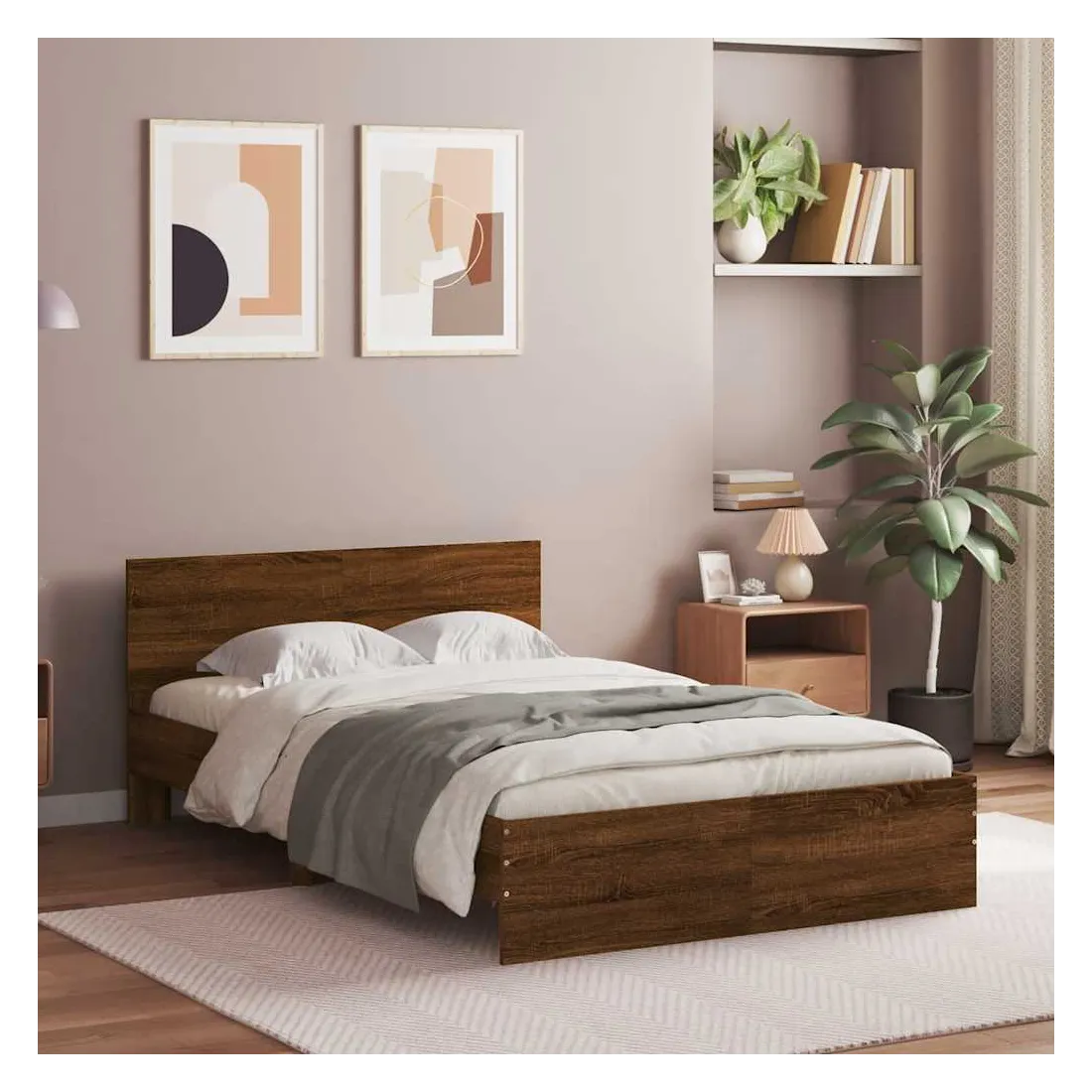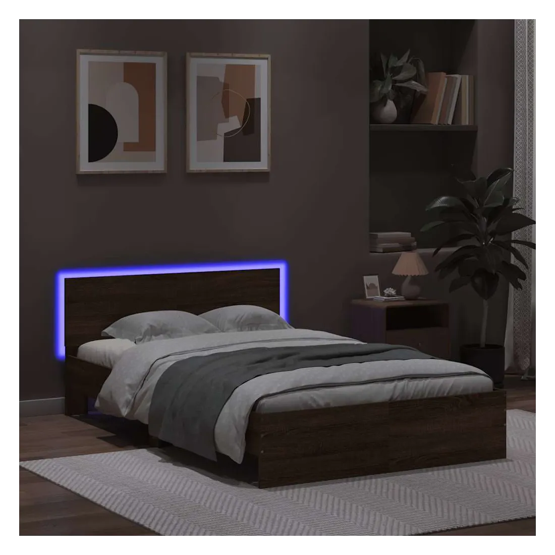 Cadre de lit avec tête de lit et LED chêne marron 120x190 cm
