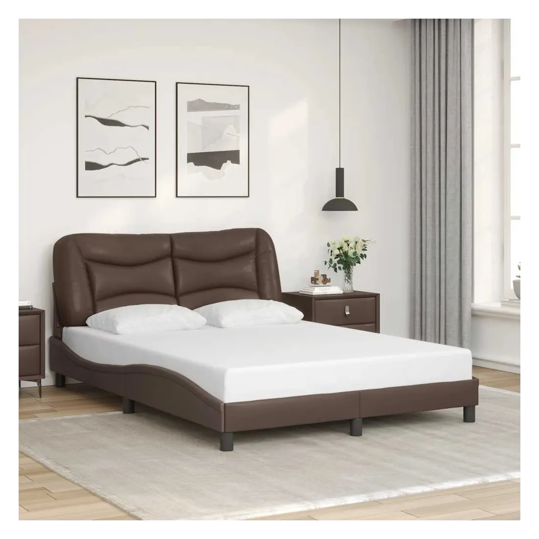 Obtenez une meilleure nuit de sommeil reposante grâce à ce cadre de lit avec tête de lit ! Il est un supplément accueillant à toute chambre à coucher. Similicuir durable : le similicuir de qualité supérieure est un matériau très durable. Il est résistant aux taches, ce qui le rend facile à nettoyer avec un chiffon humide. La surface lisse donne également un aspect luxueux et la beauté du cuir véritable.Lattes de contreplaqué : les lattes de contreplaqué assurent une bonne répartition du poids, garantissant que le matelas reste en place à chaque torsion de votre corps pendant le sommeil.Excellent soutien : l'oreiller de tête de lit est rembourré avec de la fibre de polypropylène pour un confort ultra doux et optimal vous offre un excellent soutien du dos lorsque vous êtes assis dans votre lit pour lire ou regarder la télévision.Design latéral ondulé : l’aspect ondulé du cadre de lit est élégant et sophistiqué, ajoutant une touche moderne et élégante à votre décor, ce qui en fait le point central de votre chambre à coucher. Bon à savoir :Un matelas n'est pas inclus avec ce lit. Nous offrons une sélection variée de matelas. Vous pouvez consulter notre boutique pour trouver un matelas assorti.