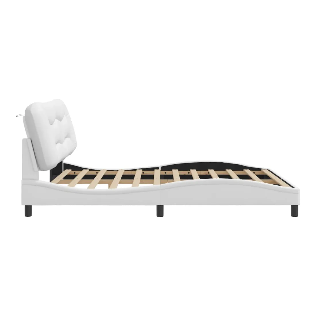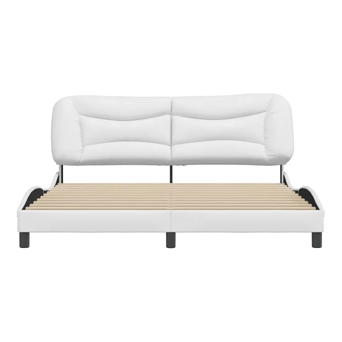 Obtenez une meilleure nuit de sommeil reposante grâce à ce cadre de lit avec tête de lit ! Il est un supplément accueillant à toute chambre à coucher. Similicuir durable : le similicuir de qualité supérieure est un matériau très durable. Il est résistant aux taches, ce qui le rend facile à nettoyer avec un chiffon humide. La surface lisse donne également un aspect luxueux et la beauté du cuir véritable.Lattes de contreplaqué : les lattes de contreplaqué assurent une bonne répartition du poids, garantissant que le matelas reste en place à chaque torsion de votre corps pendant le sommeil.Excellent soutien : l'oreiller de tête de lit est rembourré avec de la fibre de polypropylène pour un confort ultra doux et optimal vous offre un excellent soutien du dos lorsque vous êtes assis dans votre lit pour lire ou regarder la télévision.Design latéral ondulé : l’aspect ondulé du cadre de lit est élégant et sophistiqué, ajoutant une touche moderne et élégante à votre décor, ce qui en fait le point central de votre chambre à coucher. Bon à savoir :Un matelas n'est pas inclus avec ce lit. Nous offrons une sélection variée de matelas. Vous pouvez consulter notre boutique pour trouver un matelas assorti.