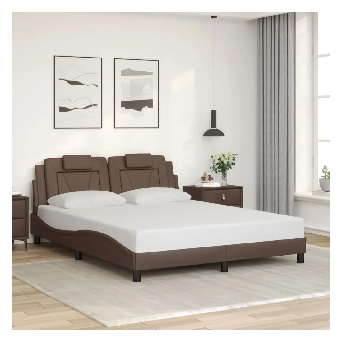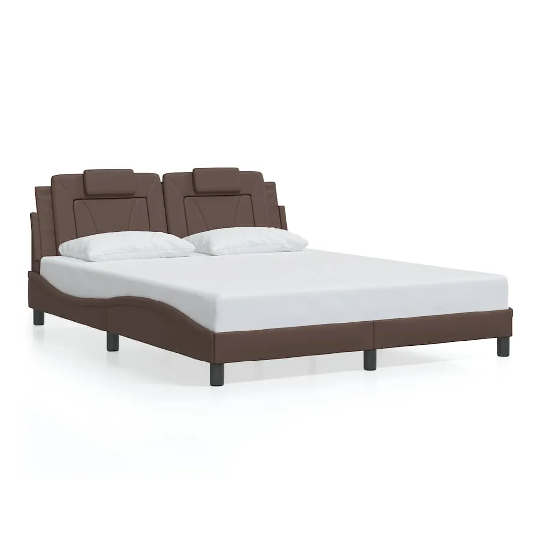 Obtenez une meilleure nuit de sommeil reposante grâce à ce cadre de lit avec tête de lit ! Il est un supplément accueillant à toute chambre à coucher. Similicuir durable : le similicuir de qualité supérieure est un matériau très durable. Il est résistant aux taches, ce qui le rend facile à nettoyer avec un chiffon humide. La surface lisse donne également un aspect luxueux et la beauté du cuir véritable.Lattes de contreplaqué : les lattes de contreplaqué assurent une bonne répartition du poids, garantissant que le matelas reste en place à chaque torsion de votre corps pendant le sommeil.Excellent soutien : l'oreiller de tête de lit est rembourré avec de la mousse pour un confort ultra doux et optimal vous offre un excellent soutien du dos lorsque vous êtes assis dans votre lit pour lire ou regarder la télévision.Design latéral ondulé : l’aspect ondulé du cadre de lit est élégant et sophistiqué, ajoutant une touche moderne et élégante à votre décor, ce qui en fait le point central de votre chambre à coucher. Bon à savoir :Un matelas n'est pas inclus avec ce lit. Nous offrons une sélection variée de matelas. Vous pouvez consulter notre boutique pour trouver un matelas assorti.