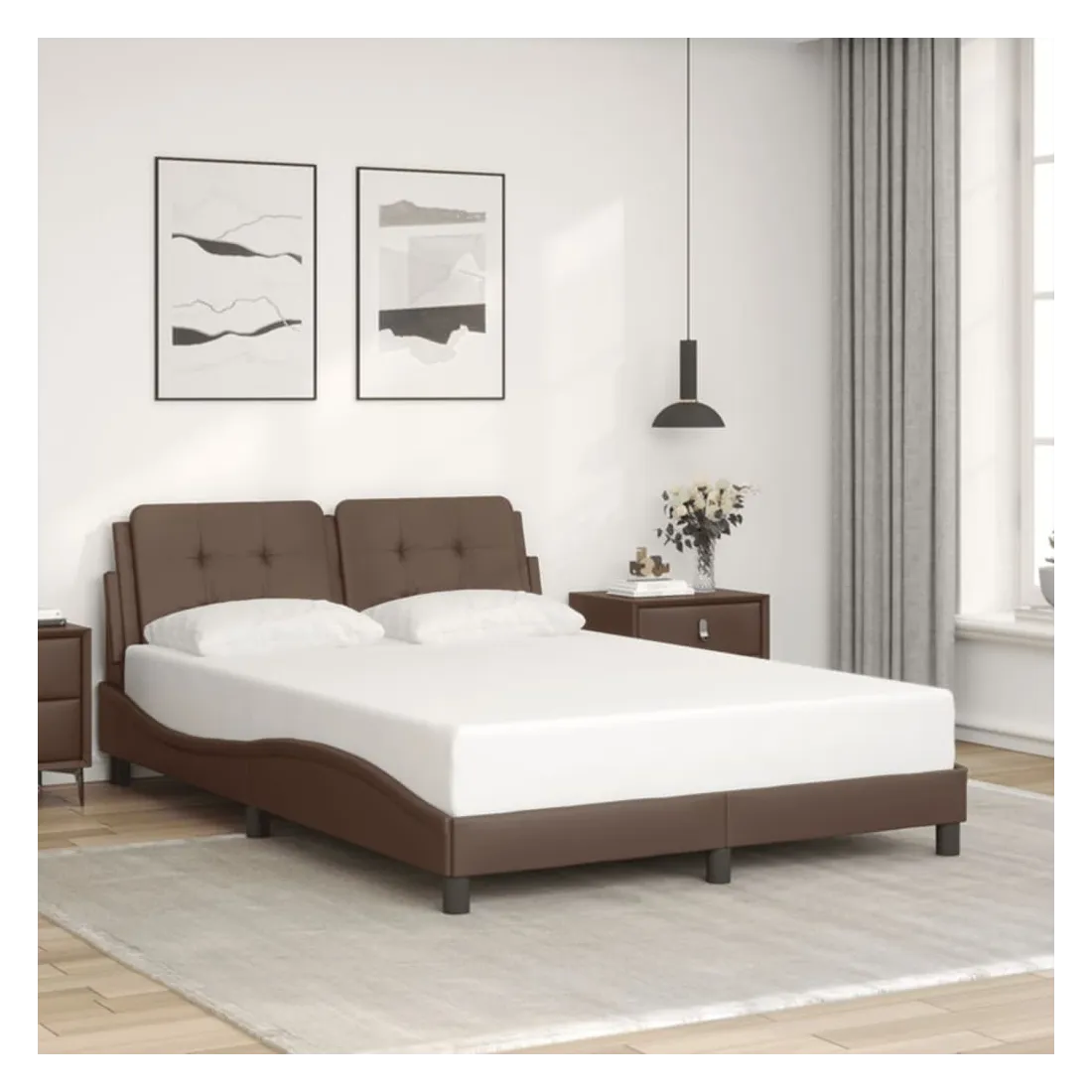 Obtenez une meilleure nuit de sommeil reposante grâce à ce cadre de lit avec tête de lit ! Il est un supplément accueillant à toute chambre à coucher. Similicuir durable : le similicuir de qualité supérieure est un matériau très durable. Il est résistant aux taches, ce qui le rend facile à nettoyer avec un chiffon humide. La surface lisse donne également un aspect luxueux et la beauté du cuir véritable.Lattes de contreplaqué : les lattes de contreplaqué assurent une bonne répartition du poids, garantissant que le matelas reste en place à chaque torsion de votre corps pendant le sommeil.Excellent soutien : l'oreiller de tête de lit est rembourré avec de la mousse pour un confort ultra doux et optimal vous offre un excellent soutien du dos lorsque vous êtes assis dans votre lit pour lire ou regarder la télévision.Design pratique : le coussin de tête de lit est doté d'une fermeture éclair pour une installation facile.Design latéral ondulé : l’aspect ondulé du cadre de lit est élégant et sophistiqué, ajoutant une touche moderne et élégante à votre décor, ce qui en fait le point central de votre chambre à coucher. Bon à savoir :Un matelas n'est pas inclus avec ce lit. Nous offrons une sélection variée de matelas. Vous pouvez consulter notre boutique pour trouver un matelas assorti.