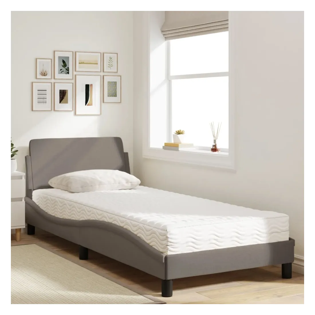 Obtenez une meilleure nuit de sommeil reposante grâce à ce lit avec matelas ! Il est un supplément accueillant à toute chambre à coucher. Tissu durable : le tissu présente un aspect simple et épuré, et il est respirant et durable.Lattes de contreplaqué : les lattes de contreplaqué assurent une bonne répartition du poids, garantissant que le matelas reste en place à chaque torsion de votre corps pendant le sommeil.Excellent soutien : la tête de lit vous offre un excellent soutien du dos lorsque vous êtes assis dans votre lit pour lire ou regarder la télévision.Matelas en mousse : ce matelas de lit en tissu à 3 couches est rempli de mousse PU 22D pour un confort optimal. Il contribue à soulager la fatigue et à favoriser la circulation sanguine, vous offrant ainsi une relaxation complète et une bonne qualité de sommeil. En outre, le matelas est disponible en dureté H2 et H3, de sorte que vous pouvez simplement tourner le matelas pour choisir la dureté qui vous convient le mieux.Design latéral ondulé : l’aspect ondulé du cadre de lit est élégant et sophistiqué, ajoutant une touche moderne et élégante à votre décor, ce qui en fait le point central de votre chambre à coucher.