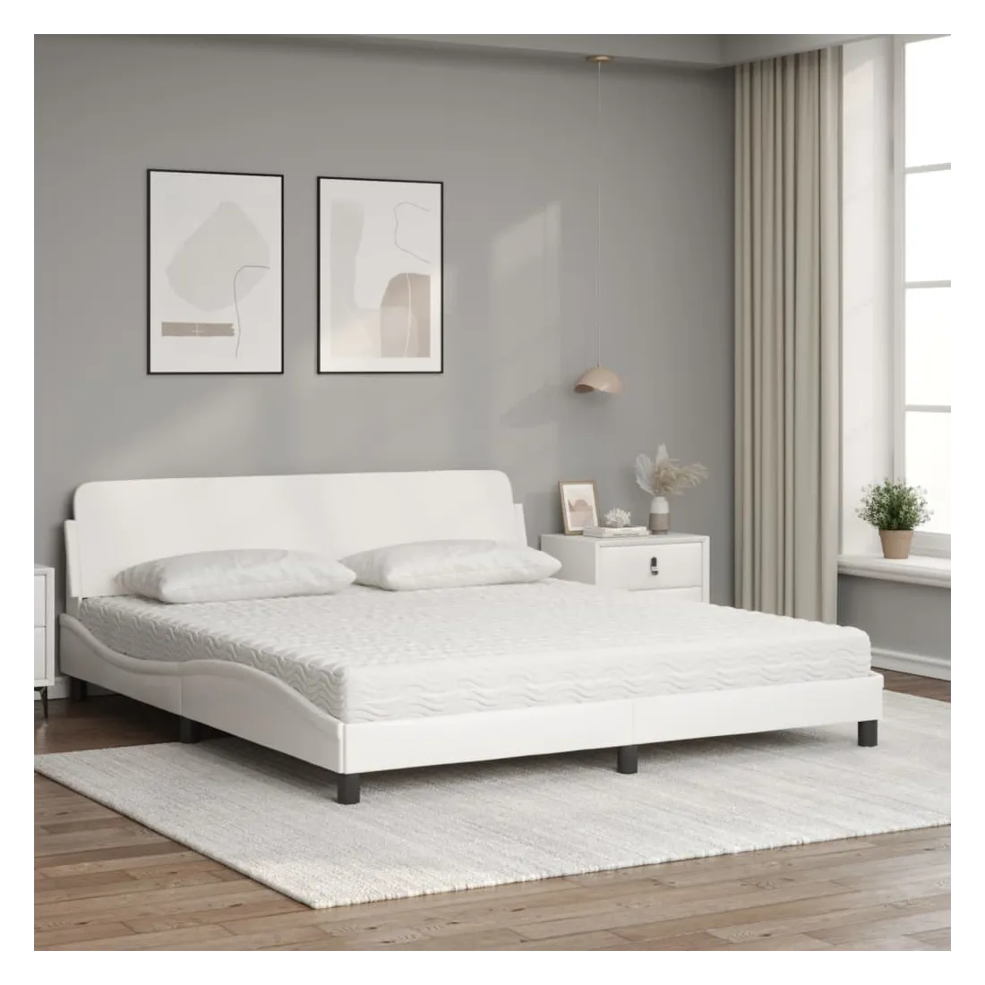 Obtenez une meilleure nuit de sommeil reposante grâce à ce lit avec matelas ! Il est un supplément accueillant à toute chambre à coucher. Similicuir durable : le similicuir de qualité supérieure est un matériau très durable. Il est résistant aux taches, ce qui le rend facile à nettoyer avec un chiffon humide. La surface lisse donne également un aspect luxueux et la beauté du cuir véritable.Lattes de contreplaqué : les lattes de contreplaqué assurent une bonne répartition du poids, garantissant que le matelas reste en place à chaque torsion de votre corps pendant le sommeil.Excellent soutien : la tête de lit vous offre un excellent soutien du dos lorsque vous êtes assis dans votre lit pour lire ou regarder la télévision.Matelas en mousse : ce matelas de lit en tissu à 3 couches est rempli de mousse PU 22D pour un confort optimal. Il contribue à soulager la fatigue et à favoriser la circulation sanguine, vous offrant ainsi une relaxation complète et une bonne qualité de sommeil. En outre, le matelas est disponible en dureté H2 et H3, de sorte que vous pouvez simplement tourner le matelas pour choisir la dureté qui vous convient le mieux.Design latéral ondulé : l’aspect ondulé du cadre de lit est élégant et sophistiqué, ajoutant une touche moderne et élégante à votre décor, ce qui en fait le point central de votre chambre à coucher.
