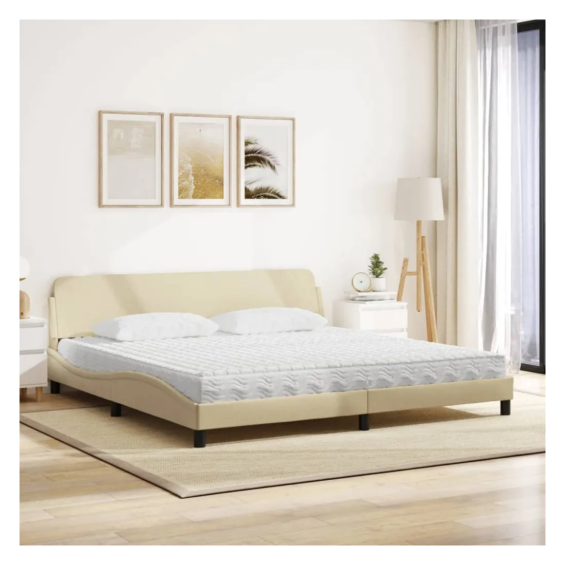 Obtenez une meilleure nuit de sommeil reposante grâce à ce lit avec matelas ! Il est un supplément accueillant à toute chambre à coucher. Tissu durable : le tissu présente un aspect simple et épuré, et il est respirant et durable.Lattes de contreplaqué : les lattes de contreplaqué assurent une bonne répartition du poids, garantissant que le matelas reste en place à chaque torsion de votre corps pendant le sommeil.Excellent soutien : la tête de lit vous offre un excellent soutien du dos lorsque vous êtes assis dans votre lit pour lire ou regarder la télévision.Matelas en mousse : ce matelas de lit en tissu à 3 couches est rempli de mousse PU 22D pour un confort optimal. Il contribue à soulager la fatigue et à favoriser la circulation sanguine, vous offrant ainsi une relaxation complète et une bonne qualité de sommeil. En outre, le matelas est disponible en dureté H2 et H3, de sorte que vous pouvez simplement tourner le matelas pour choisir la dureté qui vous convient le mieux.Design latéral ondulé : l’aspect ondulé du cadre de lit est élégant et sophistiqué, ajoutant une touche moderne et élégante à votre décor, ce qui en fait le point central de votre chambre à coucher.
