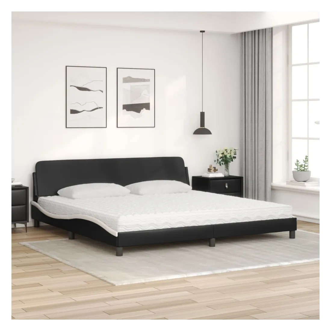 Obtenez une meilleure nuit de sommeil reposante grâce à ce lit avec matelas ! Il est un supplément accueillant à toute chambre à coucher. Similicuir durable : le similicuir de qualité supérieure est un matériau très durable. Il est résistant aux taches, ce qui le rend facile à nettoyer avec un chiffon humide. La surface lisse donne également un aspect luxueux et la beauté du cuir véritable.Lattes de contreplaqué : les lattes de contreplaqué assurent une bonne répartition du poids, garantissant que le matelas reste en place à chaque torsion de votre corps pendant le sommeil.Excellent soutien : la tête de lit vous offre un excellent soutien du dos lorsque vous êtes assis dans votre lit pour lire ou regarder la télévision.Matelas en mousse : ce matelas de lit en tissu à 3 couches est rempli de mousse PU 22D pour un confort optimal. Il contribue à soulager la fatigue et à favoriser la circulation sanguine, vous offrant ainsi une relaxation complète et une bonne qualité de sommeil. En outre, le matelas est disponible en dureté H2 et H3, de sorte que vous pouvez simplement tourner le matelas pour choisir la dureté qui vous convient le mieux.Design latéral ondulé : l’aspect ondulé du cadre de lit est élégant et sophistiqué, ajoutant une touche moderne et élégante à votre décor, ce qui en fait le point central de votre chambre à coucher.