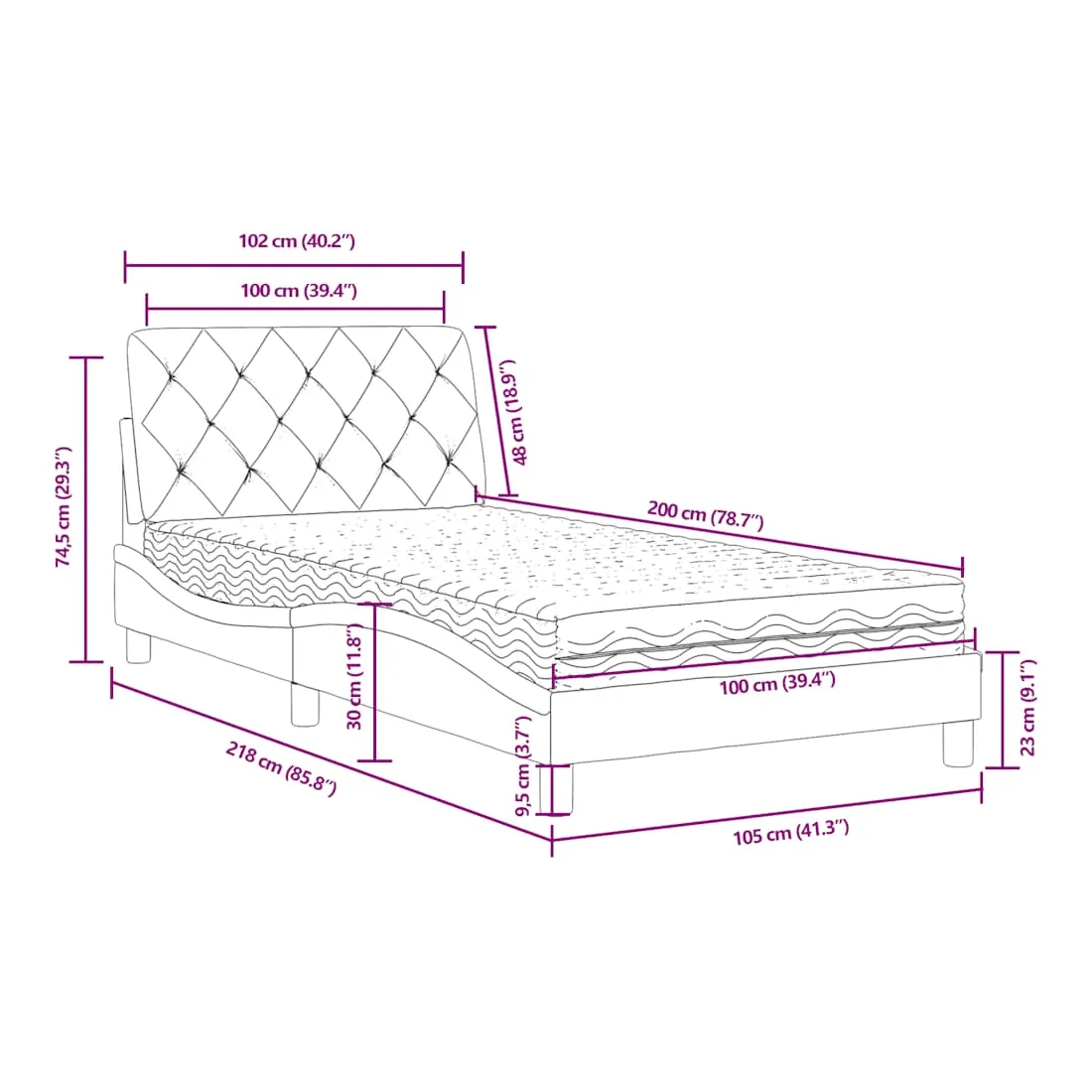 - Dimensions totales : 218 x 105 x 74,5 cm (L x l x H)