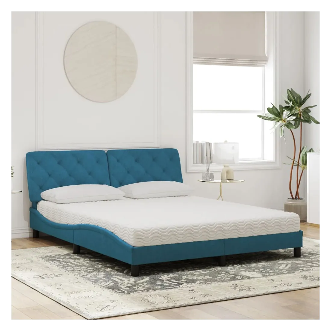 Obtenez une meilleure nuit de sommeil reposante grâce à ce lit avec matelas ! Il est un supplément accueillant à toute chambre à coucher. Velours doux : le velours est un tissu doux et confortable, agréable au toucher.Lattes de contreplaqué : les lattes de contreplaqué assurent une bonne répartition du poids, garantissant que le matelas reste en place à chaque torsion de votre corps pendant le sommeil.Excellent soutien : la tête de lit vous offre un excellent soutien du dos lorsque vous êtes assis dans votre lit pour lire ou regarder la télévision.Matelas en mousse : ce matelas de lit en tissu à 3 couches est rempli de mousse PU 22D pour un confort optimal. Il contribue à soulager la fatigue et à favoriser la circulation sanguine, vous offrant ainsi une relaxation complète et une bonne qualité de sommeil. En outre, le matelas est disponible en dureté H2 et H3, de sorte que vous pouvez simplement tourner le matelas pour choisir la dureté qui vous convient le mieux.Design latéral ondulé : l’aspect ondulé du cadre de lit est élégant et sophistiqué, ajoutant une touche moderne et élégante à votre décor, ce qui en fait le point central de votre chambre à coucher.