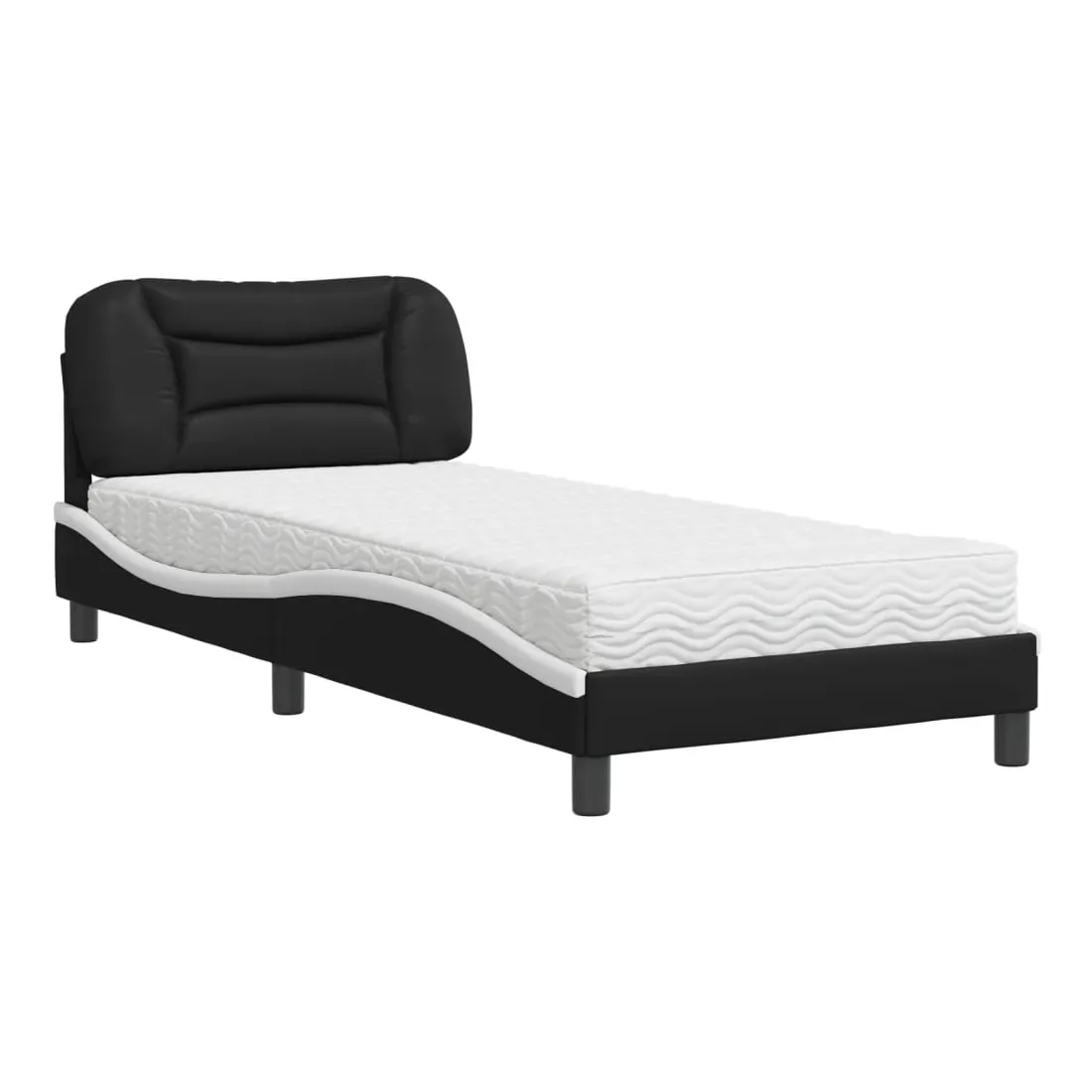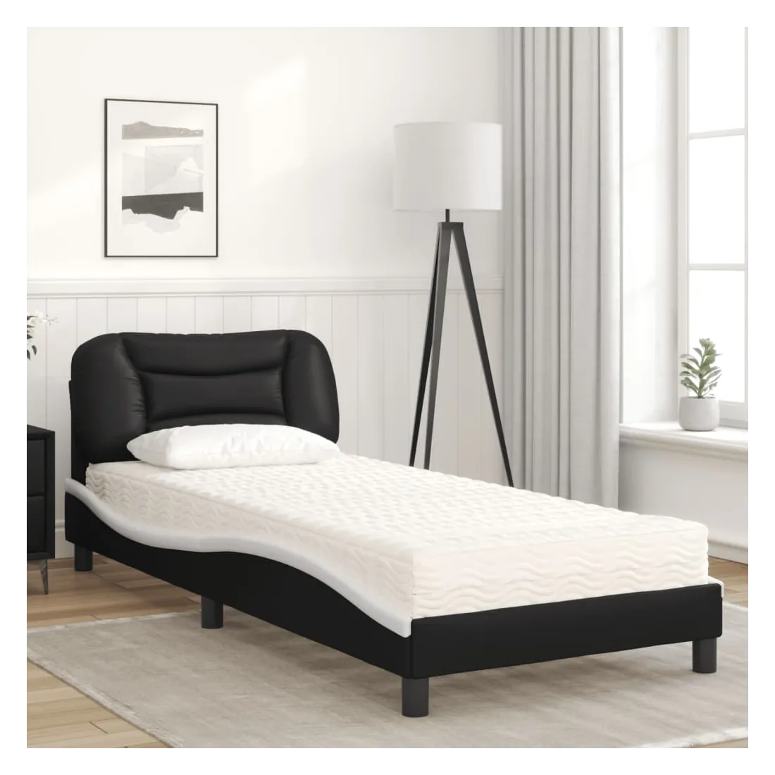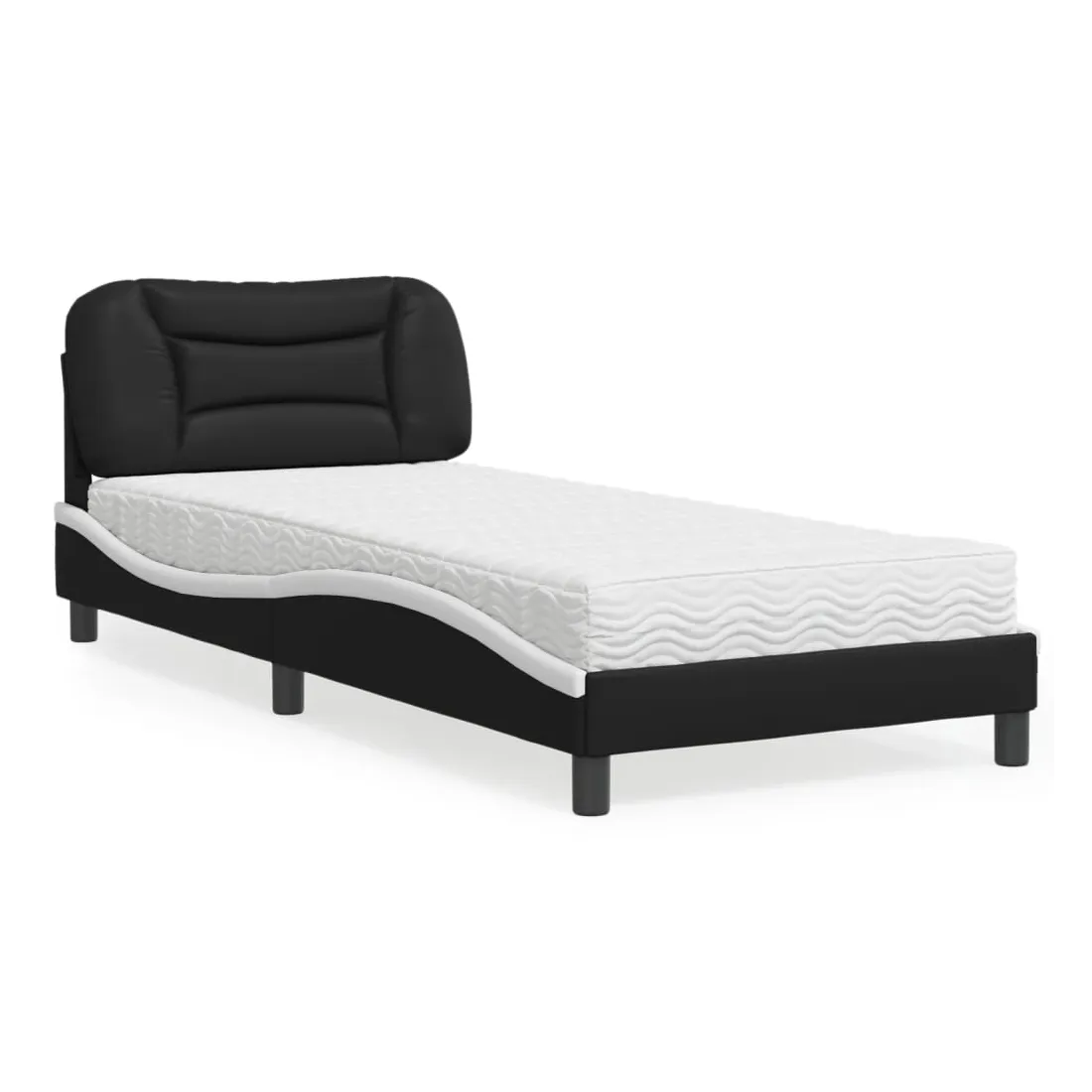 Obtenez une meilleure nuit de sommeil reposante grâce à ce lit avec matelas ! Il est un supplément accueillant à toute chambre à coucher. Similicuir durable : le similicuir de qualité supérieure est un matériau très durable. Il est résistant aux taches, ce qui le rend facile à nettoyer avec un chiffon humide. La surface lisse donne également un aspect luxueux et la beauté du cuir véritable.Lattes de contreplaqué : les lattes de contreplaqué assurent une bonne répartition du poids, garantissant que le matelas reste en place à chaque torsion de votre corps pendant le sommeil.Excellent soutien : la tête de lit vous offre un excellent soutien du dos lorsque vous êtes assis dans votre lit pour lire ou regarder la télévision.Matelas en mousse : ce matelas de lit en tissu à 3 couches est rempli de mousse PU 22D pour un confort optimal. Il contribue à soulager la fatigue et à favoriser la circulation sanguine, vous offrant ainsi une relaxation complète et une bonne qualité de sommeil. En outre, le matelas est disponible en dureté H2 et H3, de sorte que vous pouvez simplement tourner le matelas pour choisir la dureté qui vous convient le mieux.Design latéral ondulé : l’aspect ondulé du cadre de lit est élégant et sophistiqué, ajoutant une touche moderne et élégante à votre décor, ce qui en fait le point central de votre chambre à coucher.