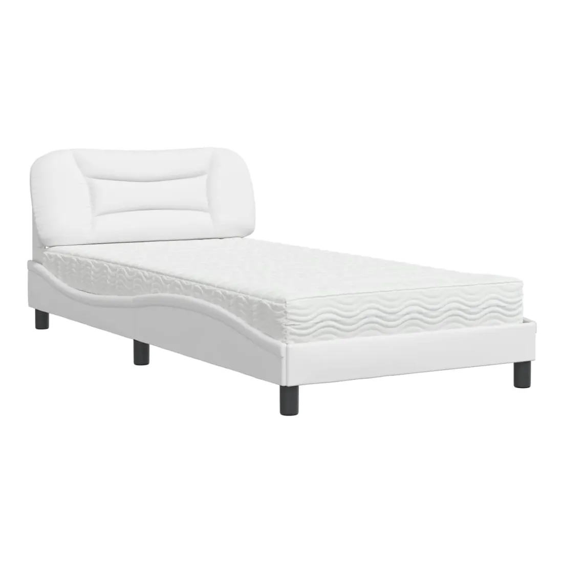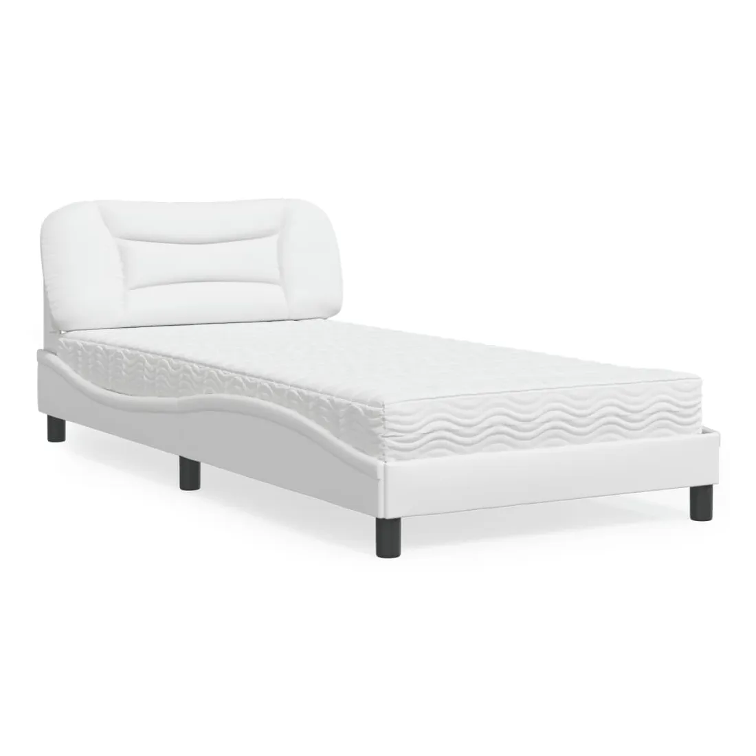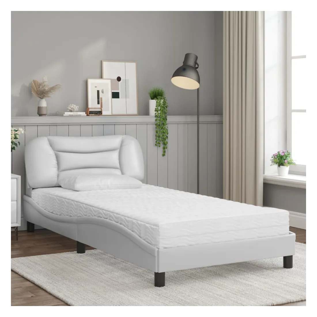 Obtenez une meilleure nuit de sommeil reposante grâce à ce lit avec matelas ! Il est un supplément accueillant à toute chambre à coucher. Similicuir durable : le similicuir de qualité supérieure est un matériau très durable. Il est résistant aux taches, ce qui le rend facile à nettoyer avec un chiffon humide. La surface lisse donne également un aspect luxueux et la beauté du cuir véritable.Lattes de contreplaqué : les lattes de contreplaqué assurent une bonne répartition du poids, garantissant que le matelas reste en place à chaque torsion de votre corps pendant le sommeil.Excellent soutien : la tête de lit vous offre un excellent soutien du dos lorsque vous êtes assis dans votre lit pour lire ou regarder la télévision.Matelas en mousse : ce matelas de lit en tissu à 3 couches est rempli de mousse PU 22D pour un confort optimal. Il contribue à soulager la fatigue et à favoriser la circulation sanguine, vous offrant ainsi une relaxation complète et une bonne qualité de sommeil. En outre, le matelas est disponible en dureté H2 et H3, de sorte que vous pouvez simplement tourner le matelas pour choisir la dureté qui vous convient le mieux.Design latéral ondulé : l’aspect ondulé du cadre de lit est élégant et sophistiqué, ajoutant une touche moderne et élégante à votre décor, ce qui en fait le point central de votre chambre à coucher.