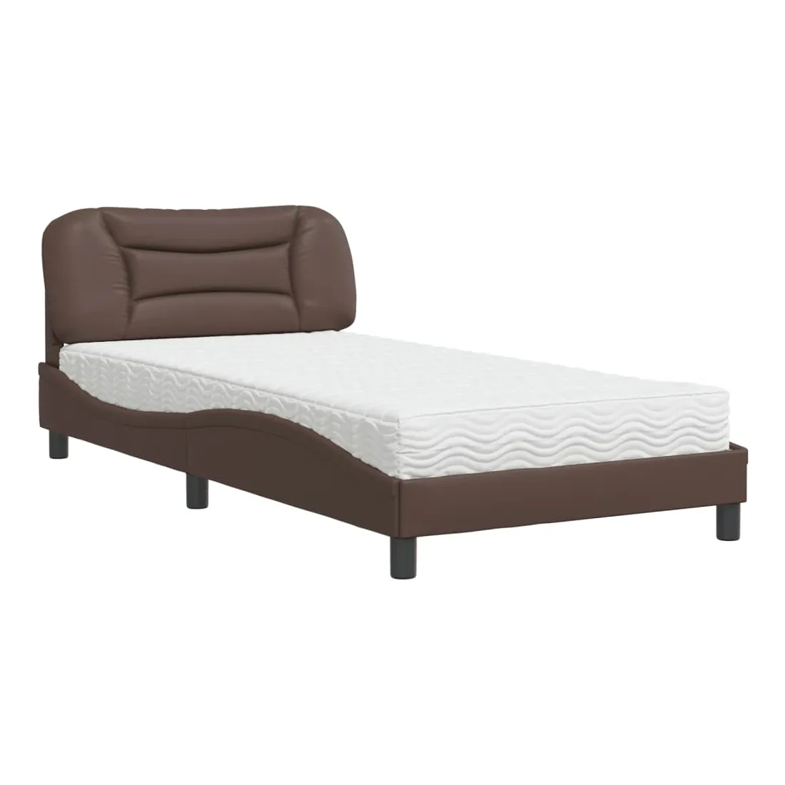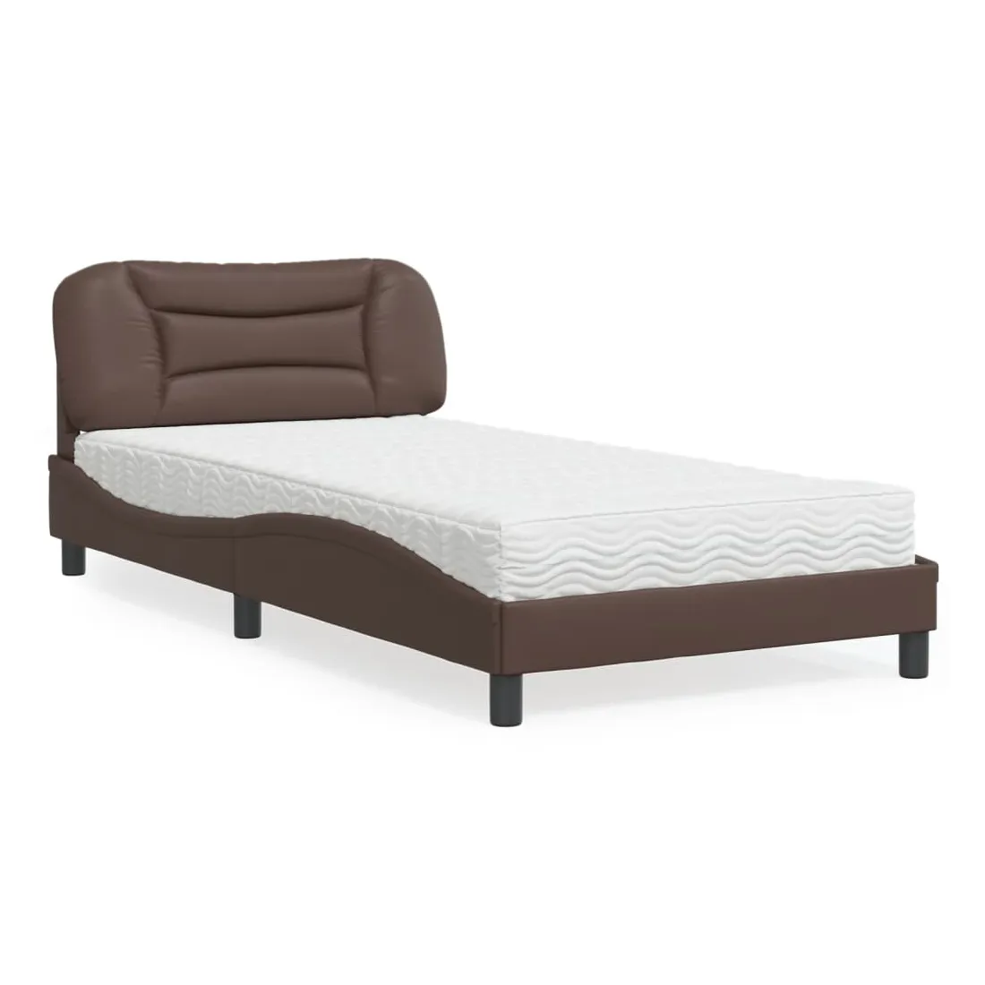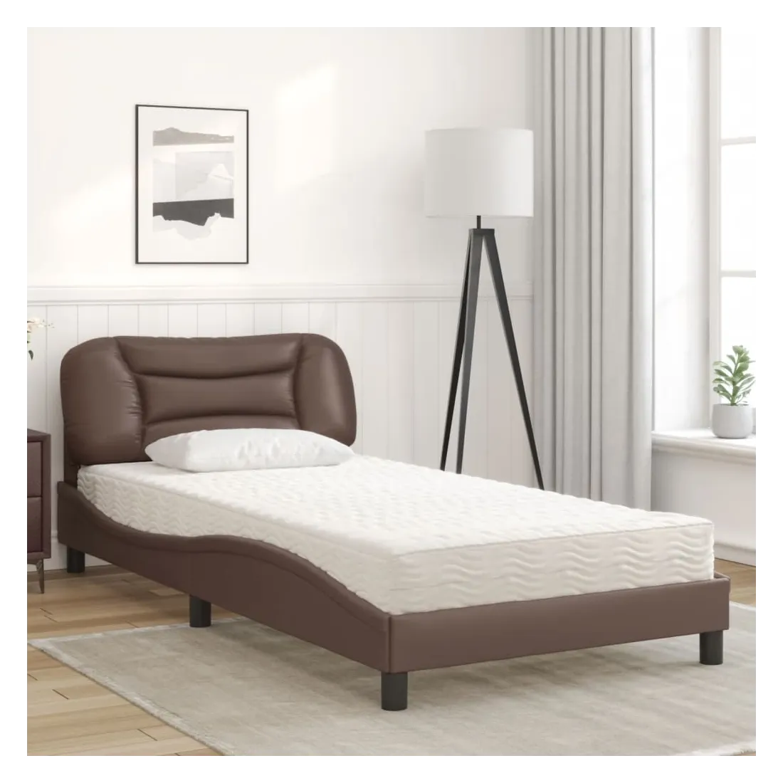 Obtenez une meilleure nuit de sommeil reposante grâce à ce lit avec matelas ! Il est un supplément accueillant à toute chambre à coucher. Similicuir durable : le similicuir de qualité supérieure est un matériau très durable. Il est résistant aux taches, ce qui le rend facile à nettoyer avec un chiffon humide. La surface lisse donne également un aspect luxueux et la beauté du cuir véritable.Lattes de contreplaqué : les lattes de contreplaqué assurent une bonne répartition du poids, garantissant que le matelas reste en place à chaque torsion de votre corps pendant le sommeil.Excellent soutien : la tête de lit vous offre un excellent soutien du dos lorsque vous êtes assis dans votre lit pour lire ou regarder la télévision.Matelas en mousse : ce matelas de lit en tissu à 3 couches est rempli de mousse PU 22D pour un confort optimal. Il contribue à soulager la fatigue et à favoriser la circulation sanguine, vous offrant ainsi une relaxation complète et une bonne qualité de sommeil. En outre, le matelas est disponible en dureté H2 et H3, de sorte que vous pouvez simplement tourner le matelas pour choisir la dureté qui vous convient le mieux.Design latéral ondulé : l’aspect ondulé du cadre de lit est élégant et sophistiqué, ajoutant une touche moderne et élégante à votre décor, ce qui en fait le point central de votre chambre à coucher.