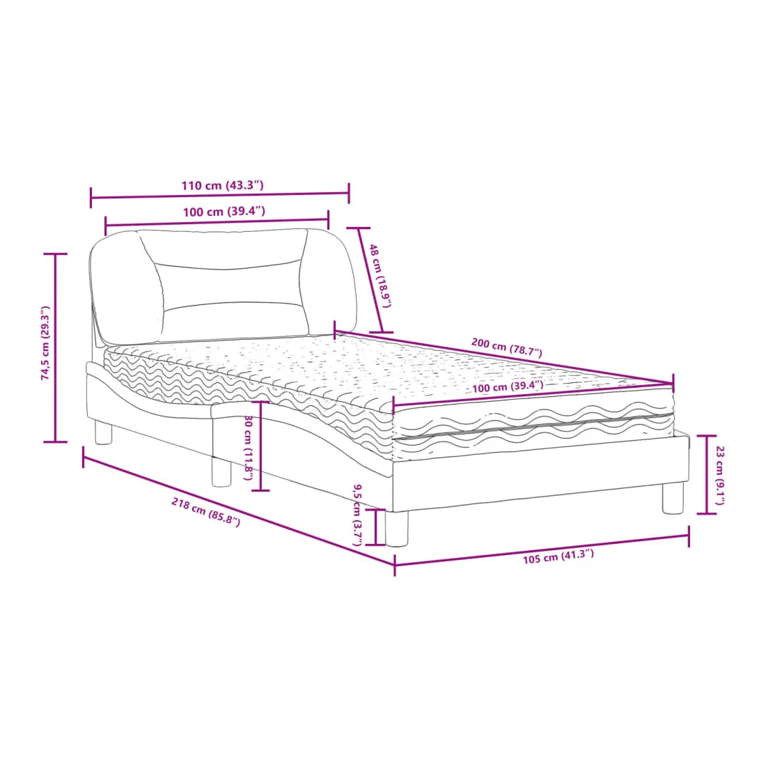 - Dimensions totales : 218 x 105 x 74,5 cm (L x l x H)