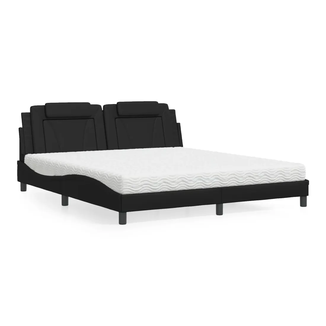 Obtenez une meilleure nuit de sommeil reposante grâce à ce lit avec matelas ! Il est un supplément accueillant à toute chambre à coucher. Similicuir durable : le similicuir de qualité supérieure est un matériau très durable. Il est résistant aux taches, ce qui le rend facile à nettoyer avec un chiffon humide. La surface lisse donne également un aspect luxueux et la beauté du cuir véritable. Lattes de contreplaqué : les lattes de contreplaqué assurent une bonne répartition du poids, garantissant que le matelas reste en place à chaque torsion de votre corps pendant le sommeil. Excellent soutien : l'oreiller de tête de lit est rembourré avec de la mousse pour un confort ultra doux et optimal vous offre un excellent soutien du dos lorsque vous êtes assis dans votre lit pour lire ou regarder la télévision. Matelas en mousse : ce matelas de lit en tissu à 3 couches est rempli de mousse PU 22D pour un confort optimal. Il contribue à soulager la fatigue et à favoriser la circulation sanguine, vous offrant ainsi une relaxation complète et une bonne qualité de sommeil. En outre, le matelas est disponible en dureté H2 et H3, de sorte que vous pouvez simplement tourner le matelas pour choisir la dureté qui vous convient le mieux. Design latéral ondulé : l’aspect ondulé du cadre de lit est élégant et sophistiqué, ajoutant une touche moderne et élégante à votre décor, ce qui en fait le point central de votre chambre à coucher.