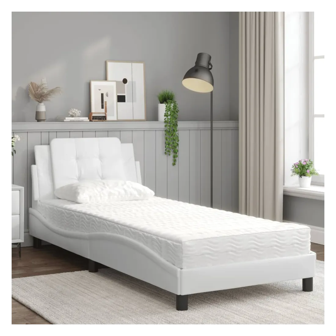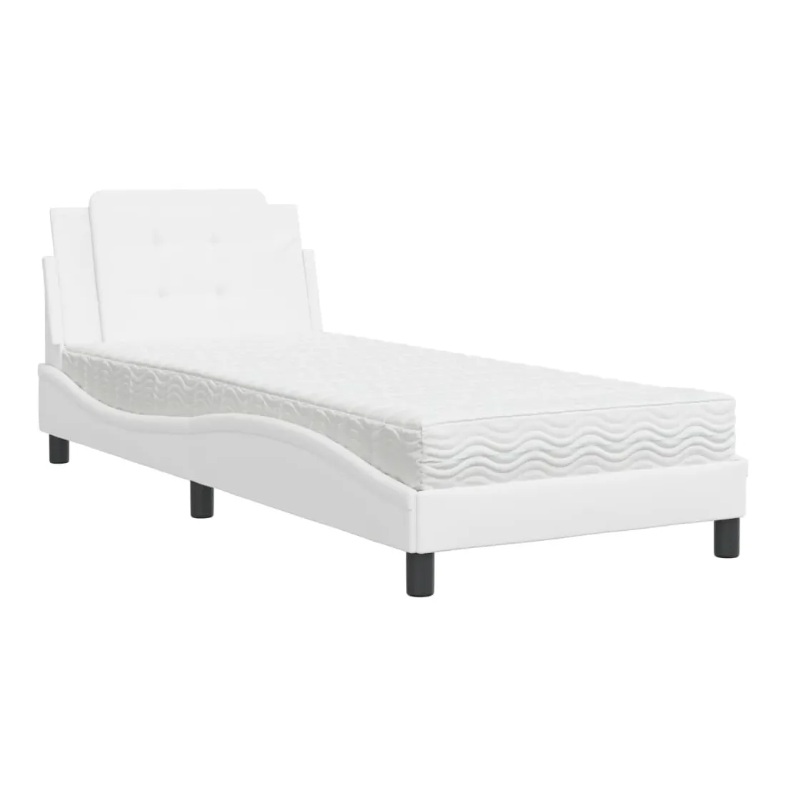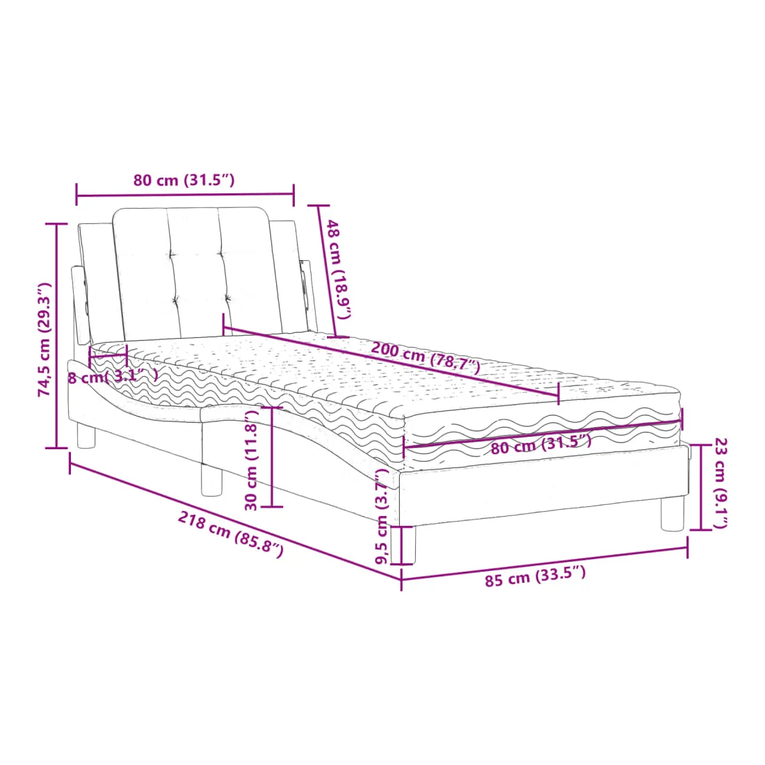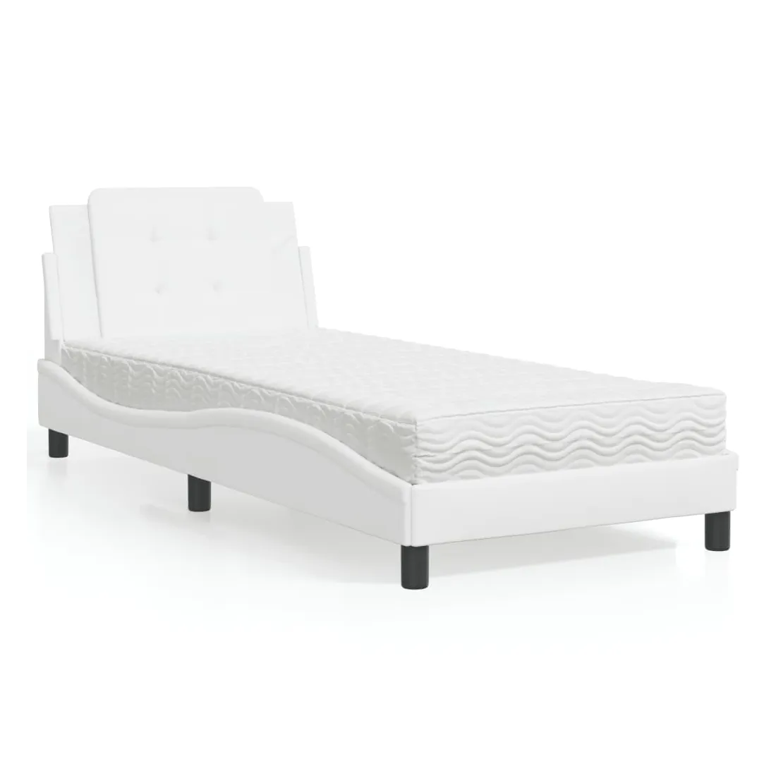Obtenez une meilleure nuit de sommeil reposante grâce à ce lit avec matelas ! Il est un supplément accueillant à toute chambre à coucher. Similicuir durable : le similicuir de qualité supérieure est un matériau très durable. Il est résistant aux taches, ce qui le rend facile à nettoyer avec un chiffon humide. La surface lisse donne également un aspect luxueux et la beauté du cuir véritable. Lattes de contreplaqué : les lattes de contreplaqué assurent une bonne répartition du poids, garantissant que le matelas reste en place à chaque torsion de votre corps pendant le sommeil. Excellent soutien : l'oreiller de tête de lit est rembourré avec de la mousse pour un confort ultra doux et optimal vous offre un excellent soutien du dos lorsque vous êtes assis dans votre lit pour lire ou regarder la télévision. Matelas en mousse : ce matelas de lit en tissu à 3 couches est rempli de mousse PU 22D pour un confort optimal. Il contribue à soulager la fatigue et à favoriser la circulation sanguine, vous offrant ainsi une relaxation complète et une bonne qualité de sommeil. En outre, le matelas est disponible en dureté H2 et H3, de sorte que vous pouvez simplement tourner le matelas pour choisir la dureté qui vous convient le mieux. Design latéral ondulé : l’aspect ondulé du cadre de lit est élégant et sophistiqué, ajoutant une touche moderne et élégante à votre décor, ce qui en fait le point central de votre chambre à coucher.