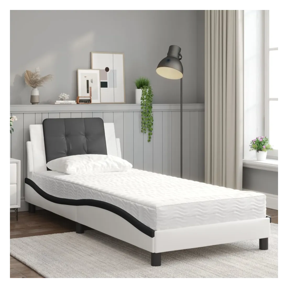 vidaXLObtenez une meilleure nuit de sommeil reposante grâce à ce lit avec matelas ! Il est un supplément accueillant à toute chambre à coucher. Similicuir durable : le similicuir de qualité supérieure est un matériau très durable. Il est résistant aux taches, ce qui le rend facile à nettoyer avec un chiffon humide. La surface lisse donne également un aspect luxueux et la beauté du cuir véritable. Lattes de contreplaqué : les lattes de contreplaqué assurent une bonne répartition du poids, garantissant que le matelas reste en place à chaque torsion de votre corps pendant le sommeil. Excellent soutien : l'oreiller de tête de lit est rembourré avec de la mousse pour un confort ultra doux et optimal vous offre un excellent soutien du dos lorsque vous êtes assis dans votre lit pour lire ou regarder la télévision. Matelas en mousse : ce matelas de lit en tissu à 3 couches est rempli de mousse PU 22D pour un confort optimal. Il contribue à soulager la fatigue et à favoriser la circulation sanguine, vous offrant ainsi une relaxation complète et une bonne qualité de sommeil. En outre, le matelas est disponible en dureté H2 et H3, de sorte que vous pouvez simplement tourner le matelas pour choisir la dureté qui vous convient le mieux. Design latéral ondulé : l’aspect ondulé du cadre de lit est élégant et sophistiqué, ajoutant une touche moderne et élégante à votre décor, ce qui en fait le point central de votre chambre à coucher.