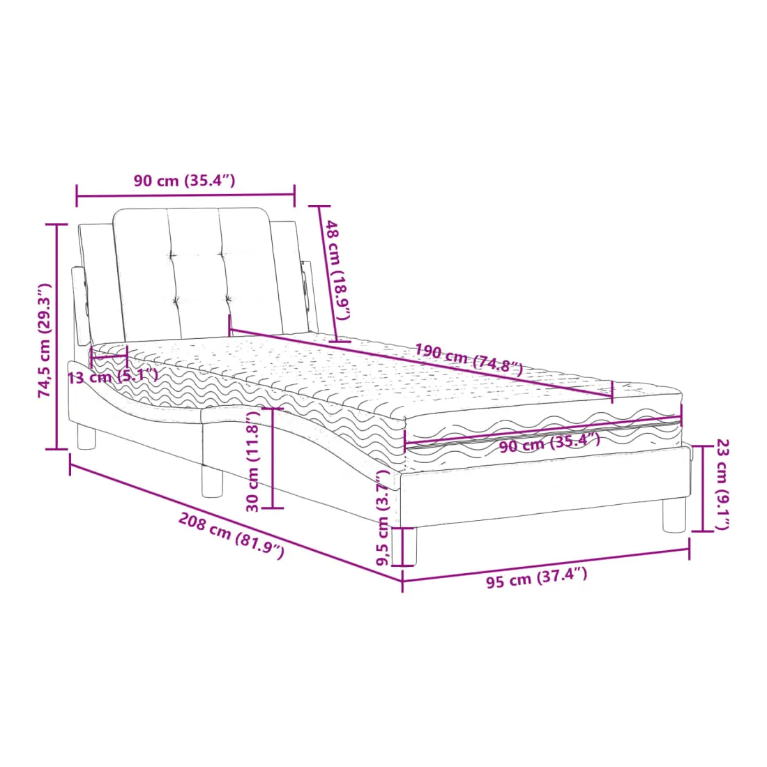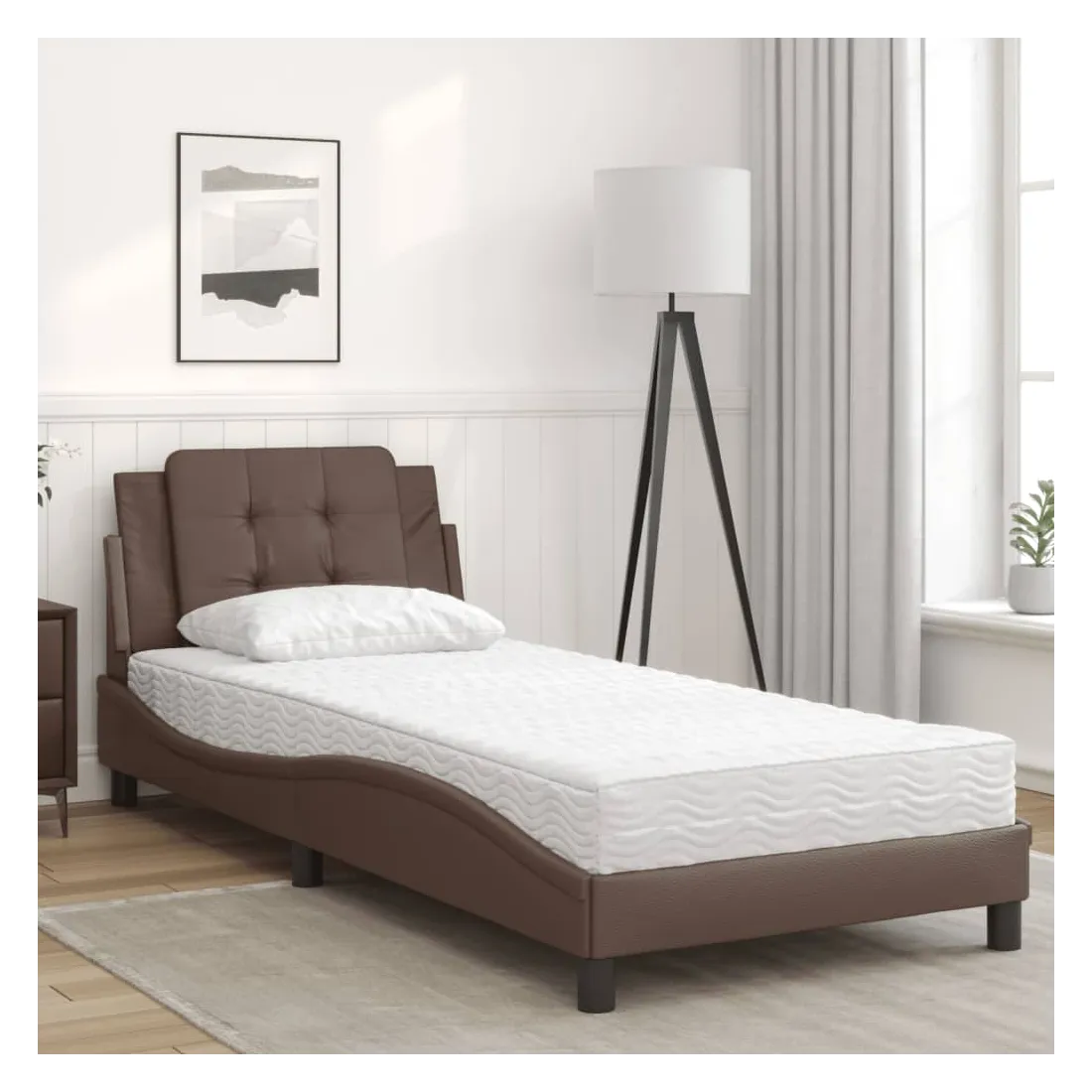 Obtenez une meilleure nuit de sommeil reposante grâce à ce lit avec matelas ! Il est un supplément accueillant à toute chambre à coucher. Similicuir durable : le similicuir de qualité supérieure est un matériau très durable. Il est résistant aux taches, ce qui le rend facile à nettoyer avec un chiffon humide. La surface lisse donne également un aspect luxueux et la beauté du cuir véritable. Lattes de contreplaqué : les lattes de contreplaqué assurent une bonne répartition du poids, garantissant que le matelas reste en place à chaque torsion de votre corps pendant le sommeil. Excellent soutien : l'oreiller de tête de lit est rembourré avec de la mousse pour un confort ultra doux et optimal vous offre un excellent soutien du dos lorsque vous êtes assis dans votre lit pour lire ou regarder la télévision. Matelas en mousse : ce matelas de lit en tissu à 3 couches est rempli de mousse PU 22D pour un confort optimal. Il contribue à soulager la fatigue et à favoriser la circulation sanguine, vous offrant ainsi une relaxation complète et une bonne qualité de sommeil. En outre, le matelas est disponible en dureté H2 et H3, de sorte que vous pouvez simplement tourner le matelas pour choisir la dureté qui vous convient le mieux. Design latéral ondulé : l’aspect ondulé du cadre de lit est élégant et sophistiqué, ajoutant une touche moderne et élégante à votre décor, ce qui en fait le point central de votre chambre à coucher.