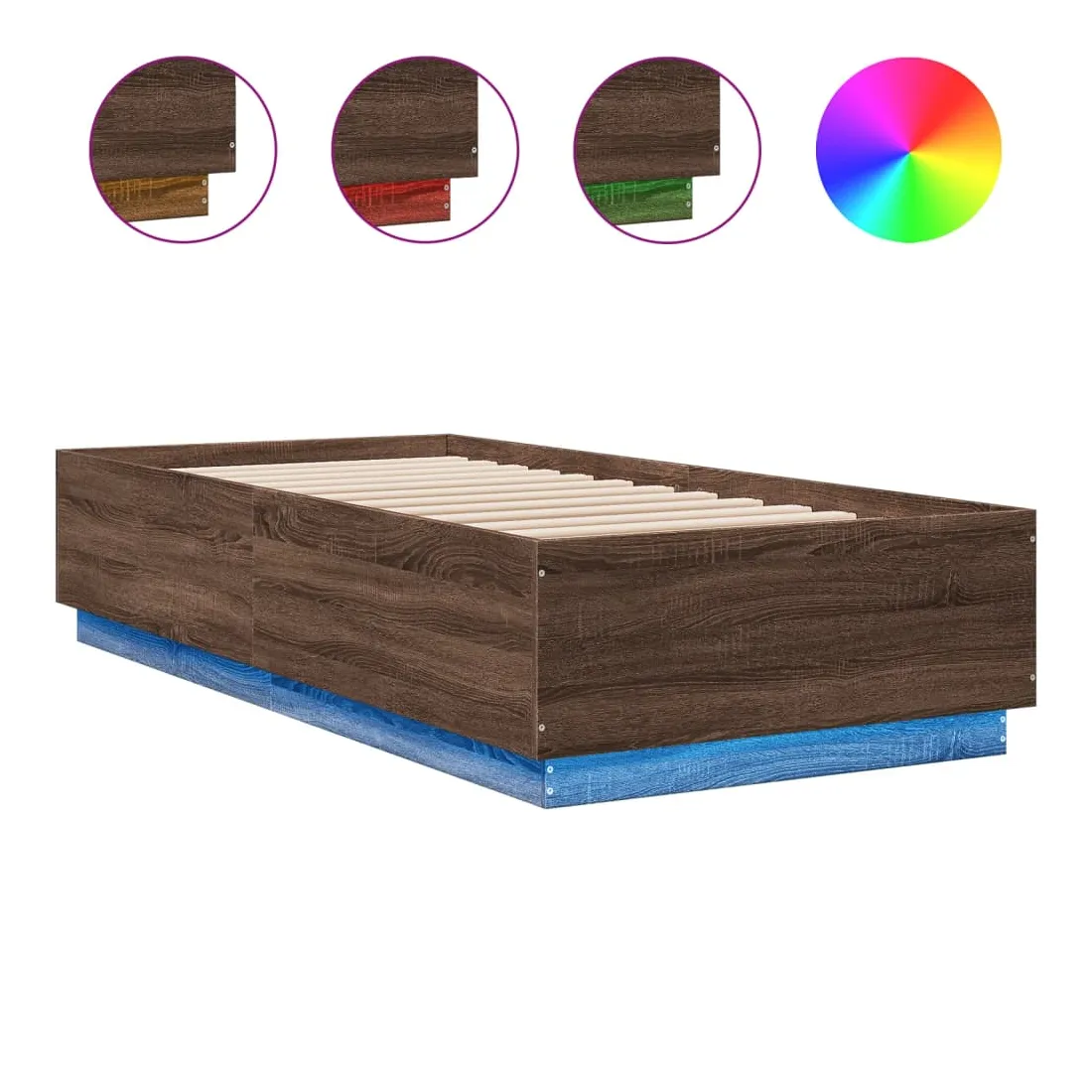 Obtenez une meilleure nuit de sommeil reposante grâce à ce cadre de lit avec lumières LED ! Il est un supplément accueillant à toute chambre à coucher. Matériau durable : le bois d'ingénierie est d'une qualité exceptionnelle avec une surface lisse et présente également résistance, stabilité et résistance à l'humidité.Lumières LED RVB : le cadre de lit est équipé de lumières LED RVB vibrantes. Avec divers menus personnalisables, vous pouvez changer sans effort la couleur des lumières et même les régler automatiquement. Ces lumières LED renforcent non seulement l'aspect contemporain du sommier, mais ajoutent également à son attrait tendance.Lattes robustes : les lattes de contreplaqué assurent une bonne répartition du poids, garantissant que le matelas reste en place à chaque torsion de votre corps pendant le sommeil. Bon à savoir :Un matelas n'est pas inclus avec ce lit. Nous offrons une sélection variée de matelas. Vous pouvez consulter notre boutique pour trouver un matelas assorti.Ce produit est doté d'un connecteur USB qui nécessite une source d'alimentation USB de 5V certifiée (non incluse).