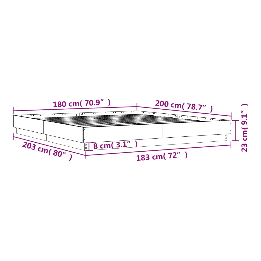 - Dimensions du matelas correspondant : 180 x 200 cm (l x L) (matelas non inclus)