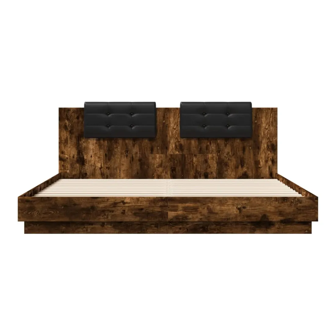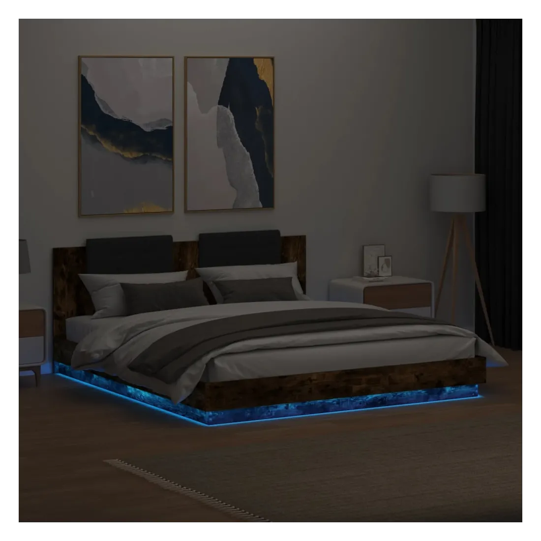 Cadre de lit avec LED sans matelas chêne fumé 160x200 cm