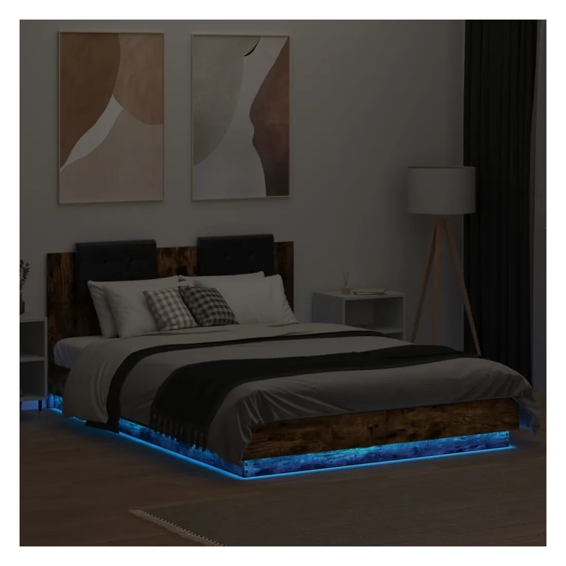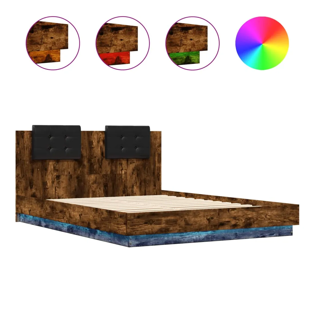 Obtenez une meilleure nuit de sommeil reposante grâce à ce cadre de lit avec tête de lit et lumières LED ! Il est un supplément accueillant à toute chambre à coucher. Matériau durable : le bois d'ingénierie est d'une qualité exceptionnelle avec une surface lisse et présente également résistance, stabilité et résistance à l'humidité.Lumières LED RVB : le cadre de lit est équipé de lumières LED RVB vibrantes. Avec divers menus personnalisables, vous pouvez changer sans effort la couleur des lumières et même les régler automatiquement. Ces lumières LED renforcent non seulement l'aspect contemporain du sommier, mais ajoutent également à son attrait tendance.Excellent soutien : la tête de lit vous offre un excellent soutien du dos lorsque vous êtes assis dans votre lit pour lire ou regarder la télévision.Lattes robustes : les lattes de contreplaqué assurent une bonne répartition du poids, garantissant que le matelas reste en place à chaque torsion de votre corps pendant le sommeil. Bon à savoir :Un matelas n'est pas inclus avec ce lit. Nous offrons une sélection variée de matelas. Vous pouvez consulter notre boutique pour trouver un matelas assorti.Ce produit est doté d'un connecteur USB qui nécessite une source d'alimentation USB de 5V certifiée (non incluse).