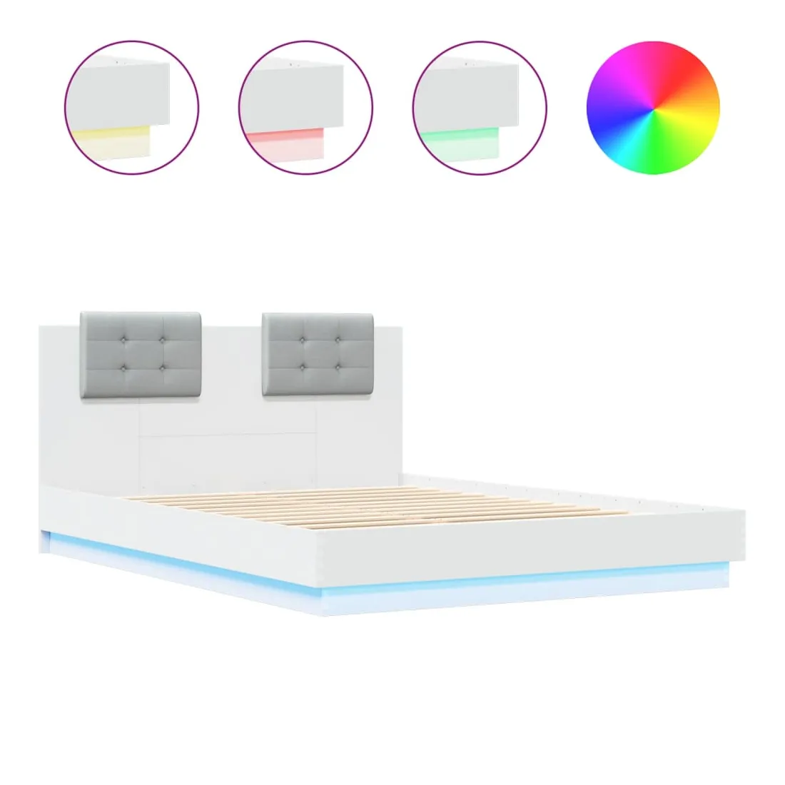 Obtenez une meilleure nuit de sommeil reposante grâce à ce cadre de lit avec tête de lit et lumières LED ! Il est un supplément accueillant à toute chambre à coucher. Matériau durable : le bois d'ingénierie est d'une qualité exceptionnelle avec une surface lisse et présente également résistance, stabilité et résistance à l'humidité.Lumières LED RVB : le cadre de lit est équipé de lumières LED RVB vibrantes. Avec divers menus personnalisables, vous pouvez changer sans effort la couleur des lumières et même les régler automatiquement. Ces lumières LED renforcent non seulement l'aspect contemporain du sommier, mais ajoutent également à son attrait tendance.Excellent soutien : la tête de lit vous offre un excellent soutien du dos lorsque vous êtes assis dans votre lit pour lire ou regarder la télévision.Lattes robustes : les lattes de contreplaqué assurent une bonne répartition du poids, garantissant que le matelas reste en place à chaque torsion de votre corps pendant le sommeil. Bon à savoir :Un matelas n'est pas inclus avec ce lit. Nous offrons une sélection variée de matelas. Vous pouvez consulter notre boutique pour trouver un matelas assorti.Ce produit est doté d'un connecteur USB qui nécessite une source d'alimentation USB de 5V certifiée (non incluse).