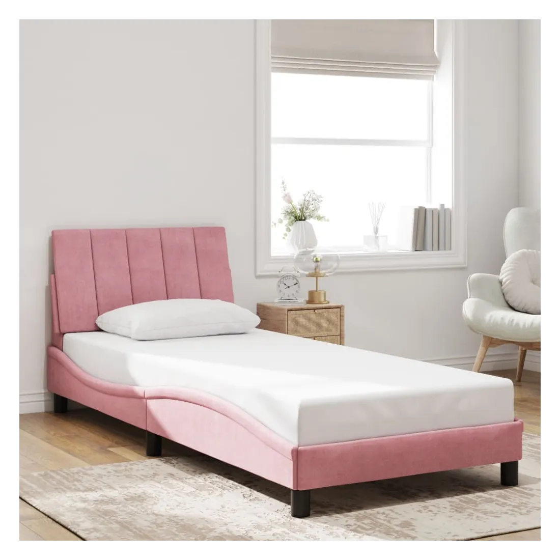 - Matériau : velours (100 % polyester), métal, bois de pin massif, contreplaqué, bois d’ingénierie