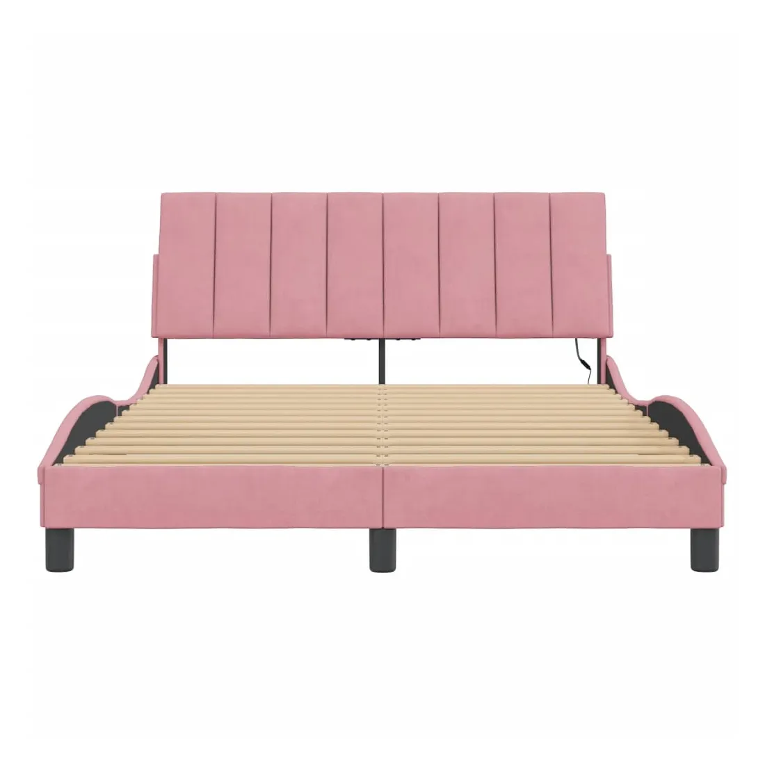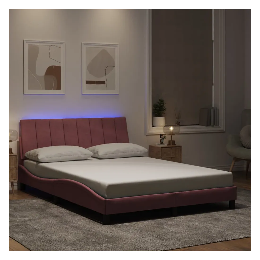 Obtenez une meilleure nuit de sommeil reposante grâce à ce cadre de lit avec lumières LED ! Il est un supplément accueillant à toute chambre à coucher. Velours doux : le velours est un tissu doux et confortable, agréable au toucher.Lattes de contreplaqué : les lattes de contreplaqué assurent une bonne répartition du poids, garantissant que le matelas reste en place à chaque torsion de votre corps pendant le sommeil.Excellent soutien : la tête de lit vous offre un excellent soutien du dos lorsque vous êtes assis dans votre lit pour lire ou regarder la télévision.Bande LED colorée : apportez de la gaieté dans l'obscurité avec des lumières LED colorées ! Les bandes auto-agrippantes situées à l'arrière du coussin de la tête de lit peuvent être utilisées pour fixer les lumières LED.Design latéral ondulé : l’aspect ondulé du cadre de lit est élégant et sophistiqué, ajoutant une touche moderne et élégante à votre décor, ce qui en fait le point central de votre chambre à coucher. Bon à savoir :Un matelas n'est pas inclus avec ce lit. Nous offrons une sélection variée de matelas. Vous pouvez consulter notre boutique pour trouver un matelas assorti.Ce produit est doté d'un connecteur USB qui nécessite une source d'alimentation USB de 5V certifiée (non incluse).