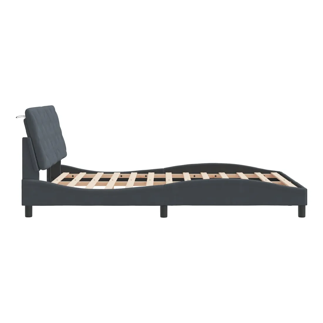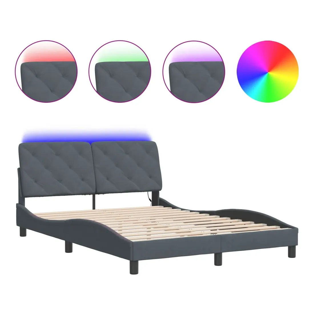 Obtenez une meilleure nuit de sommeil reposante grâce à ce cadre de lit avec lumières LED ! Il est un supplément accueillant à toute chambre à coucher. Velours doux : le velours est un tissu doux et confortable, agréable au toucher. Lattes de contreplaqué : les lattes de contreplaqué assurent une bonne répartition du poids, garantissant que le matelas reste en place à chaque torsion de votre corps pendant le sommeil. Excellent soutien : l'oreiller de tête de lit est rembourré avec de la mousse pour un confort ultra doux et optimal vous offre un excellent soutien du dos lorsque vous êtes assis dans votre lit pour lire ou regarder la télévision. Bande LED colorée : apportez de la gaieté dans l'obscurité avec des lumières LED colorées ! Les bandes auto-agrippantes situées à l'arrière du coussin de la tête de lit peuvent être utilisées pour fixer les lumières LED. Design latéral ondulé : l’aspect ondulé du cadre de lit est élégant et sophistiqué, ajoutant une touche moderne et élégante à votre décor, ce qui en fait le point central de votre chambre à coucher. Bon à savoir :Un matelas n'est pas inclus avec ce lit. Nous offrons une sélection variée de matelas. Vous pouvez consulter notre boutique pour trouver un matelas assorti.Ce produit est doté d'un connecteur USB qui nécessite une source d'alimentation USB de 5V certifiée (non incluse).