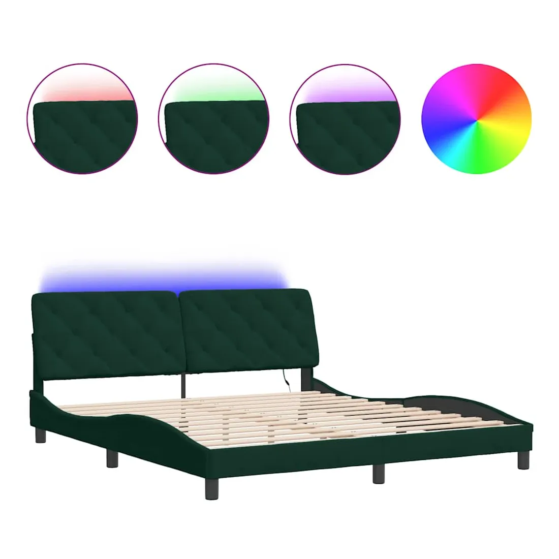 Cadre de lit avec LED sans matelas vert foncé 180x200 cm velours