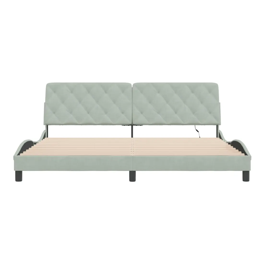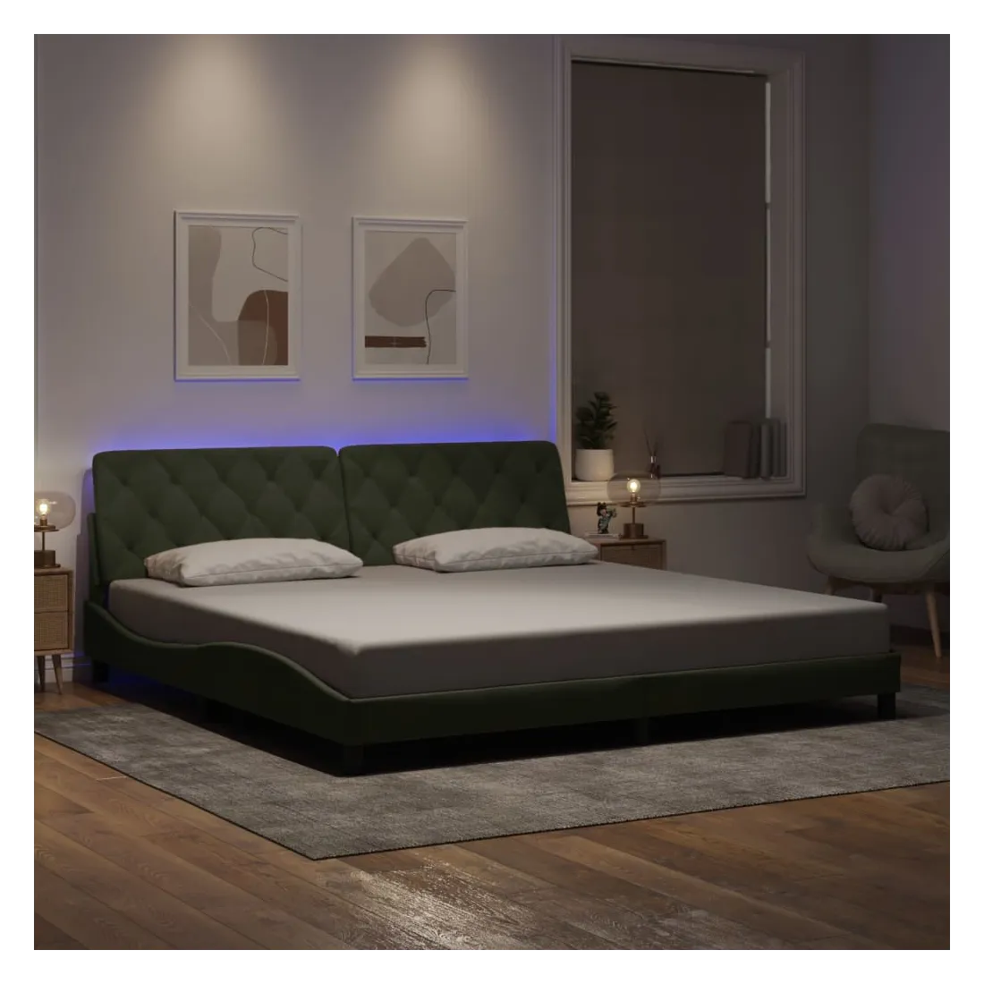 vidaXLObtenez une meilleure nuit de sommeil reposante grâce à ce cadre de lit avec lumières LED ! Il est un supplément accueillant à toute chambre à coucher. Velours doux : le velours est un tissu doux et confortable, agréable au toucher. Lattes de contreplaqué : les lattes de contreplaqué assurent une bonne répartition du poids, garantissant que le matelas reste en place à chaque torsion de votre corps pendant le sommeil. Excellent soutien : l'oreiller de tête de lit est rembourré avec de la mousse pour un confort ultra doux et optimal vous offre un excellent soutien du dos lorsque vous êtes assis dans votre lit pour lire ou regarder la télévision. Bande LED colorée : apportez de la gaieté dans l'obscurité avec des lumières LED colorées ! Les bandes auto-agrippantes situées à l'arrière du coussin de la tête de lit peuvent être utilisées pour fixer les lumières LED. Design latéral ondulé : l’aspect ondulé du cadre de lit est élégant et sophistiqué, ajoutant une touche moderne et élégante à votre décor, ce qui en fait le point central de votre chambre à coucher. Bon à savoir :Un matelas n'est pas inclus avec ce lit. Nous offrons une sélection variée de matelas. Vous pouvez consulter notre boutique pour trouver un matelas assorti.Ce produit est doté d'un connecteur USB qui nécessite une source d'alimentation USB de 5V certifiée (non incluse).