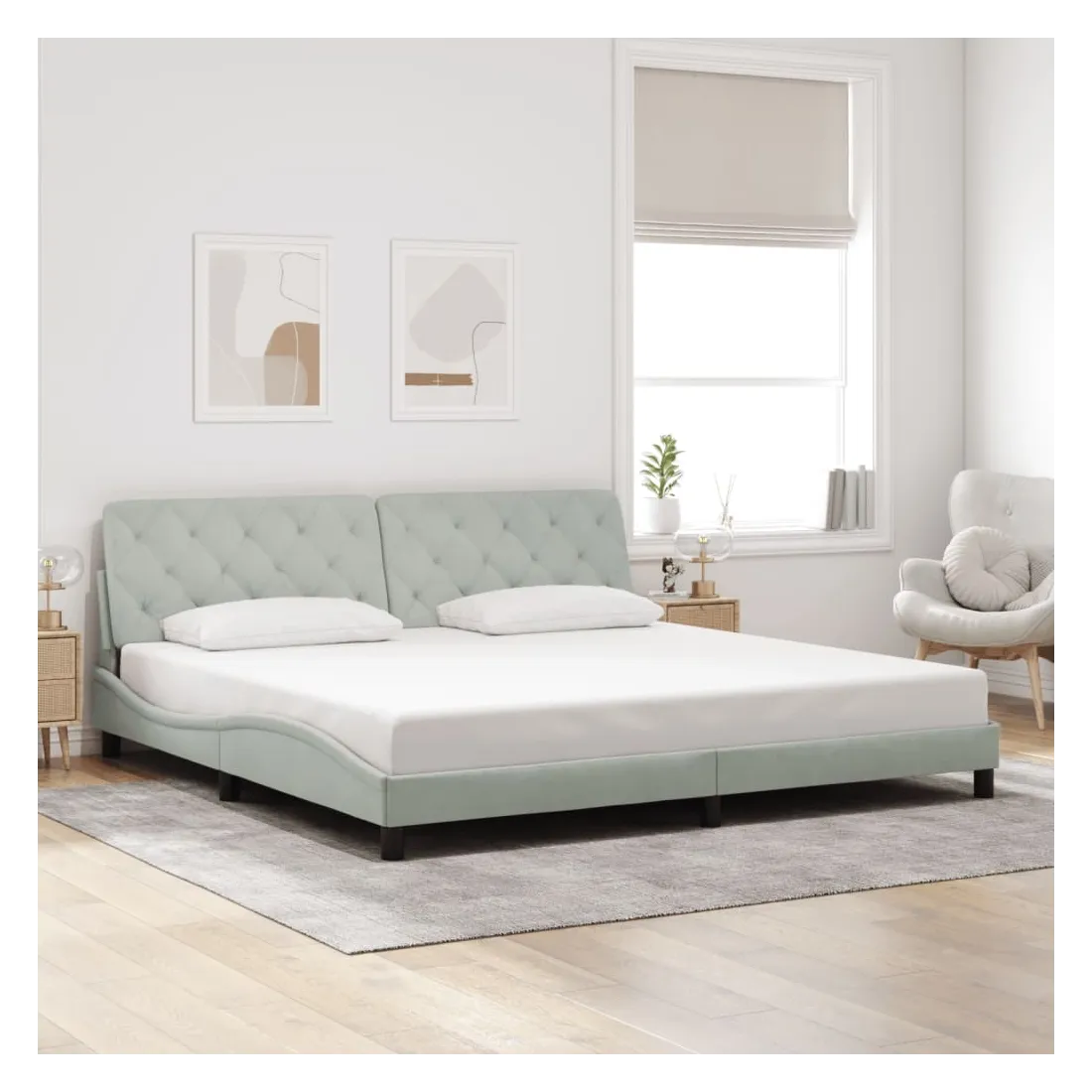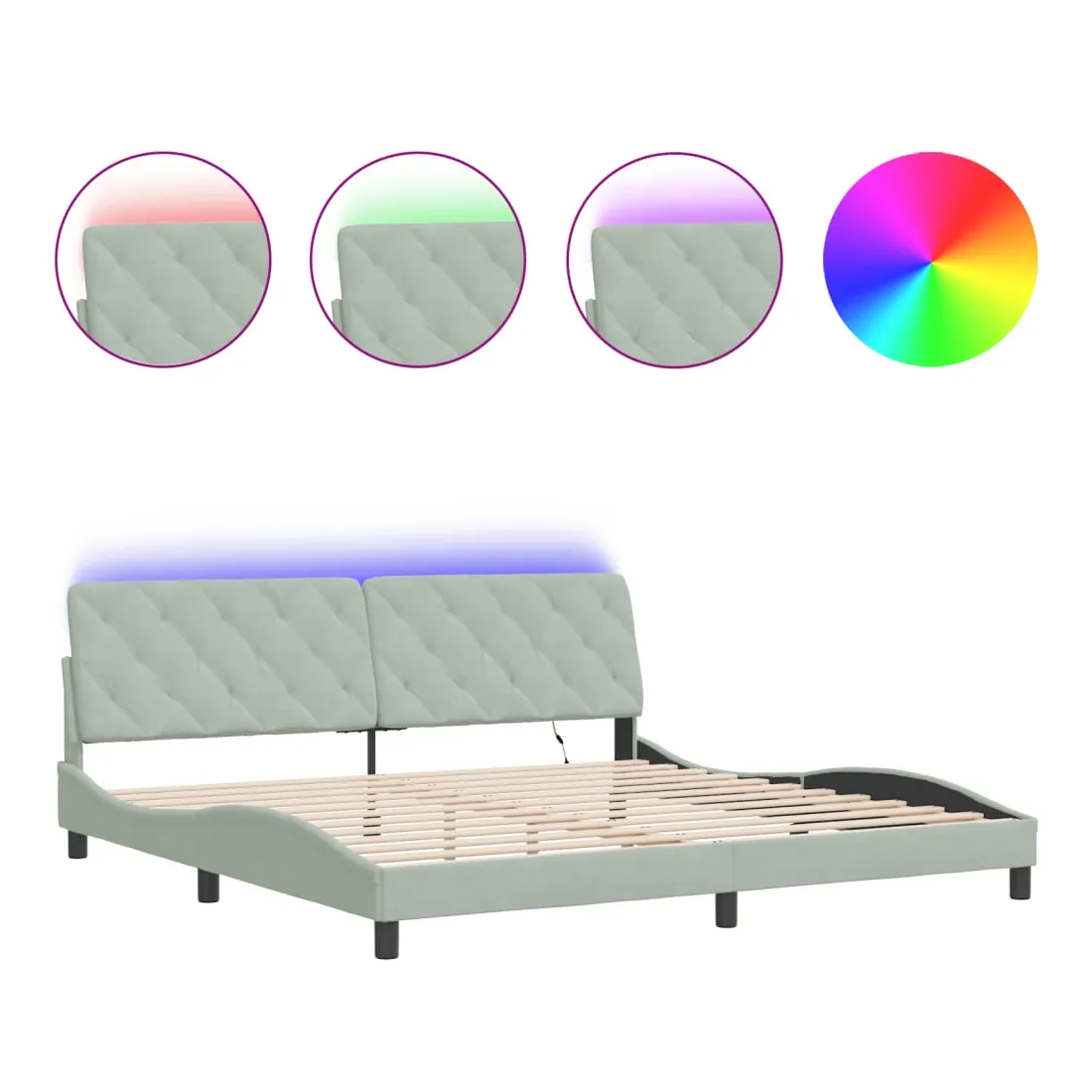 Cadre de lit avec LED sans matelas gris clair 200x200 cm velours