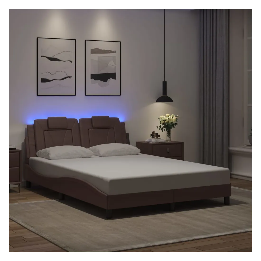Obtenez une meilleure nuit de sommeil reposante grâce à ce cadre de lit avec lumières LED ! Il est un supplément accueillant à toute chambre à coucher. Similicuir durable : le similicuir de qualité supérieure est un matériau très durable. Il est résistant aux taches, ce qui le rend facile à nettoyer avec un chiffon humide. La surface lisse donne également un aspect luxueux et la beauté du cuir véritable.Lattes de contreplaqué : les lattes de contreplaqué assurent une bonne répartition du poids, garantissant que le matelas reste en place à chaque torsion de votre corps pendant le sommeil. Excellent soutien : l'oreiller de tête de lit est rembourré avec de la mousse pour un confort ultra doux et optimal vous offre un excellent soutien du dos lorsque vous êtes assis dans votre lit pour lire ou regarder la télévision. Bande LED colorée : apportez de la gaieté dans l'obscurité avec des lumières LED colorées ! Les bandes auto-agrippantes situées à l'arrière du coussin de la tête de lit peuvent être utilisées pour fixer les lumières LED. Design latéral ondulé : l’aspect ondulé du cadre de lit est élégant et sophistiqué, ajoutant une touche moderne et élégante à votre décor, ce qui en fait le point central de votre chambre à coucher. Bon à savoir :Un matelas n'est pas inclus avec ce lit. Nous offrons une sélection variée de matelas. Vous pouvez consulter notre boutique pour trouver un matelas assorti.Ce produit est doté d'un connecteur USB qui nécessite une source d'alimentation USB de 5V certifiée (non incluse).