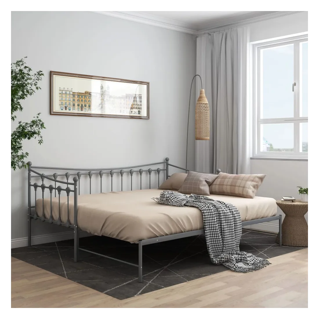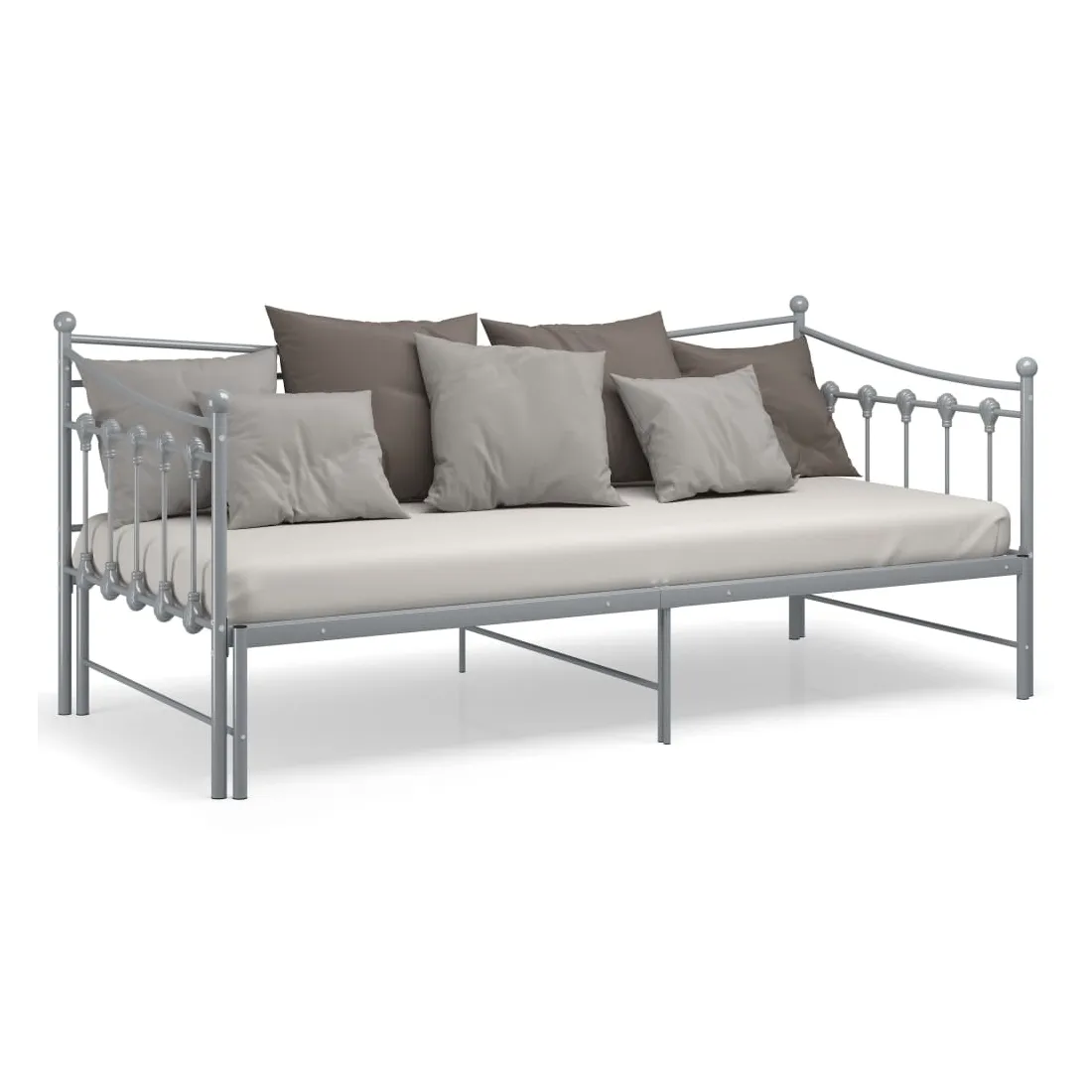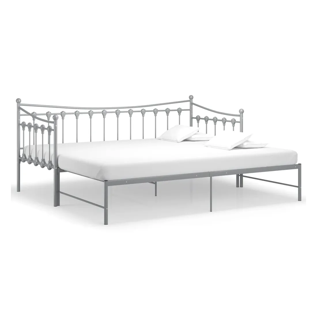 Ce canapé-lit polyvalent sera parfait pour accueillir des invités inattendus pour la nuit, tout en offrant un espace de siège confortable pendant la journée. Vous pouvez facilement convertir ce meuble en un canapé pendant la journée et en un lit confortable la nuit. Le cadre du lit de jour maximise l’espace disponible au sol tout en offrant un espace de couchage pour deux personnes, ce qui en fait un choix idéal pour les personnes ayant un espace de vie limité. De plus, le lit de nuit est équipé d’une balustrade latérale qui empêche l’utilisateur de rouler tout en dormant. Le cadre de lit entier a une construction métallique robuste, ce qui le rend très durable, et adapté pour une utilisation quotidienne. Veuillez noter que la livraison comprend le cadre de lit uniquement. Les matelas ne sont pas inclus. Vous pouvez consulter notre boutique pour les matelas assortis.