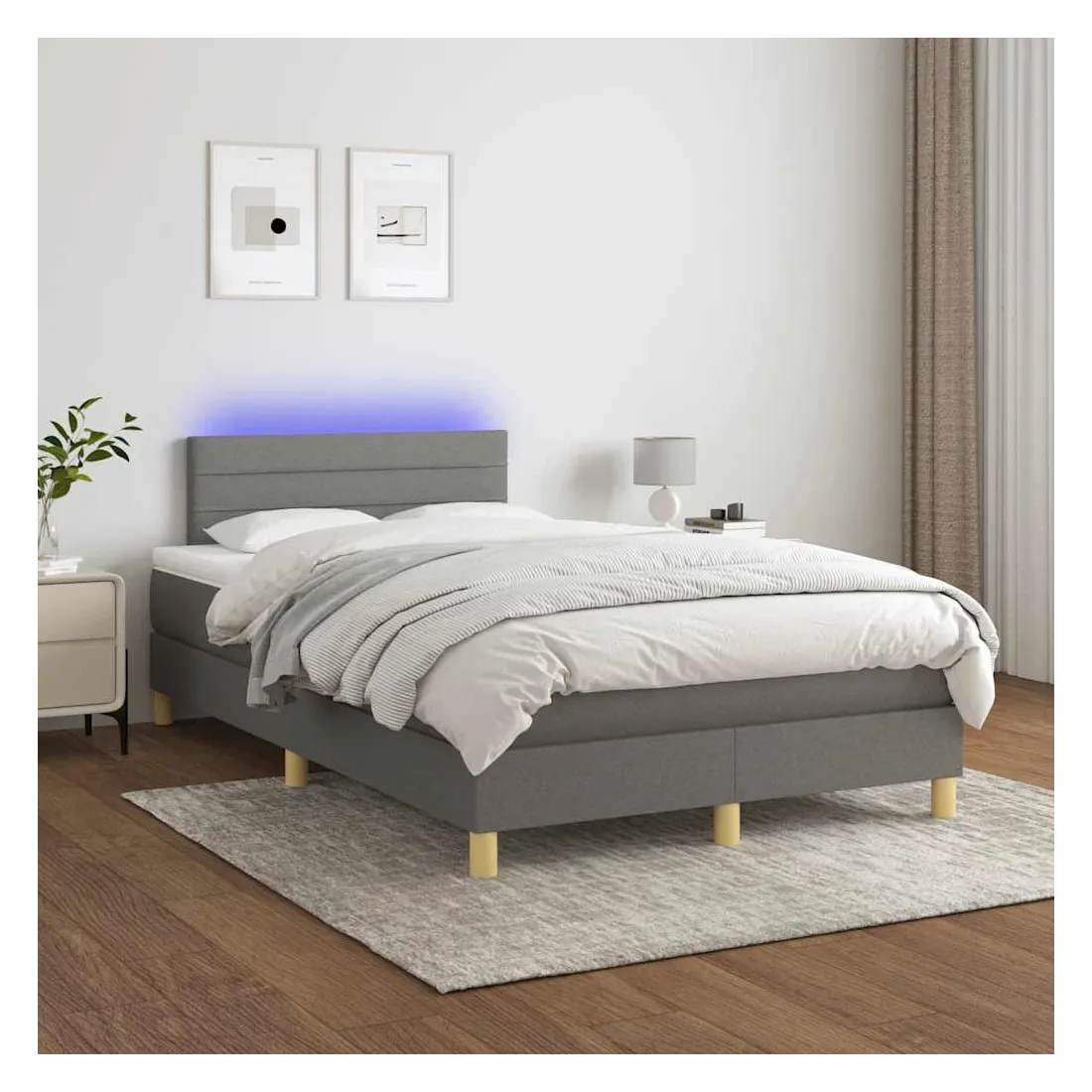 Sommier à lattes de lit matelas LED gris foncé 120x190 cm tissu