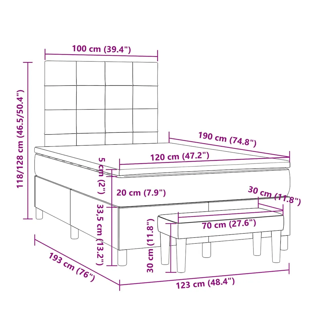 Utilisez ce lit à sommier pour profiter d'une nuit de sommeil réparatrice ! Il vous offre une relaxation maximale et un sommeil agréable. Tissu durable : le tissu présente un aspect simple et épuré, et il est respirant et durable.Tête de lit pratique : la tête de lit est réglable en hauteur selon vos préférences. La tête de lit vous offre un excellent soutien du dos lorsque vous êtes assis dans votre lit pour lire ou regarder la télévision.Matelas à ressorts ensachés : le ressort ensaché individuel intégré est connu pour sa très haute qualité tout en assurant un haut niveau de durabilité et d'adaptabilité. Il peut absorber efficacement le bruit et les chocs causés par les sauts et les rotations.Support moyen-dur : ce matelas de lit offre une stabilité accrue et juste le niveau de fermeté sans sacrifier le confort. Il est donc idéal pour les personnes qui dorment sur le dos ou sur le ventre.Protège-matelas doux pour la peau : le protège-matelas est recouvert d'un tissu résistant et doux pour la peau, ce qui le rend souple et confortable.Banc multifonctionnel : ce banc peut servir de siège supplémentaire dans votre maison. Il peut également être utilisé comme banc de bout de lit. Bon à savoir :Pour des raisons d'hygiène, le matelas ne peut pas être retourné si l'emballage est retiré ou ouvert.