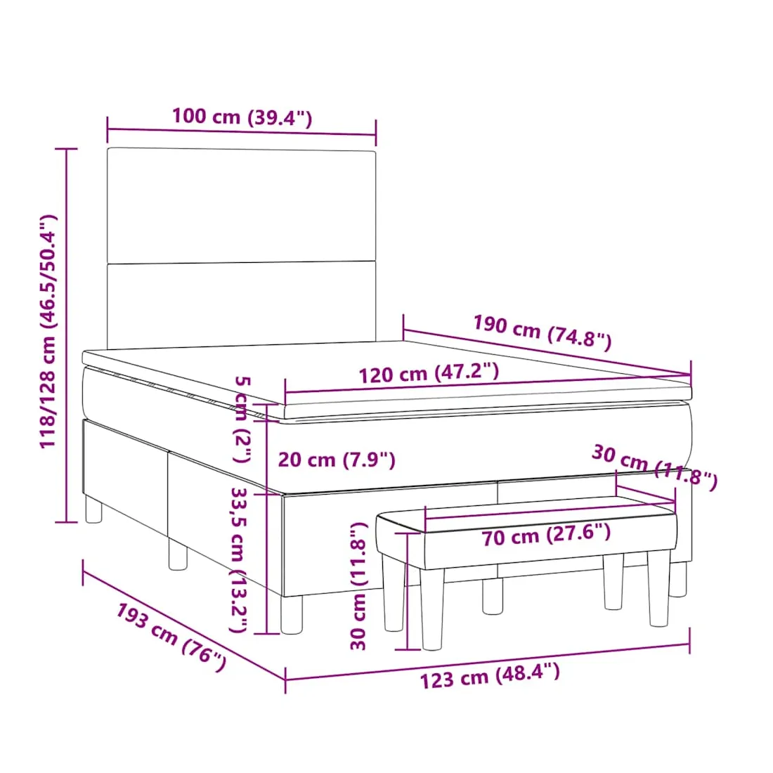 - Dimensions : 120 x 190 x 20 cm (l x L x H)