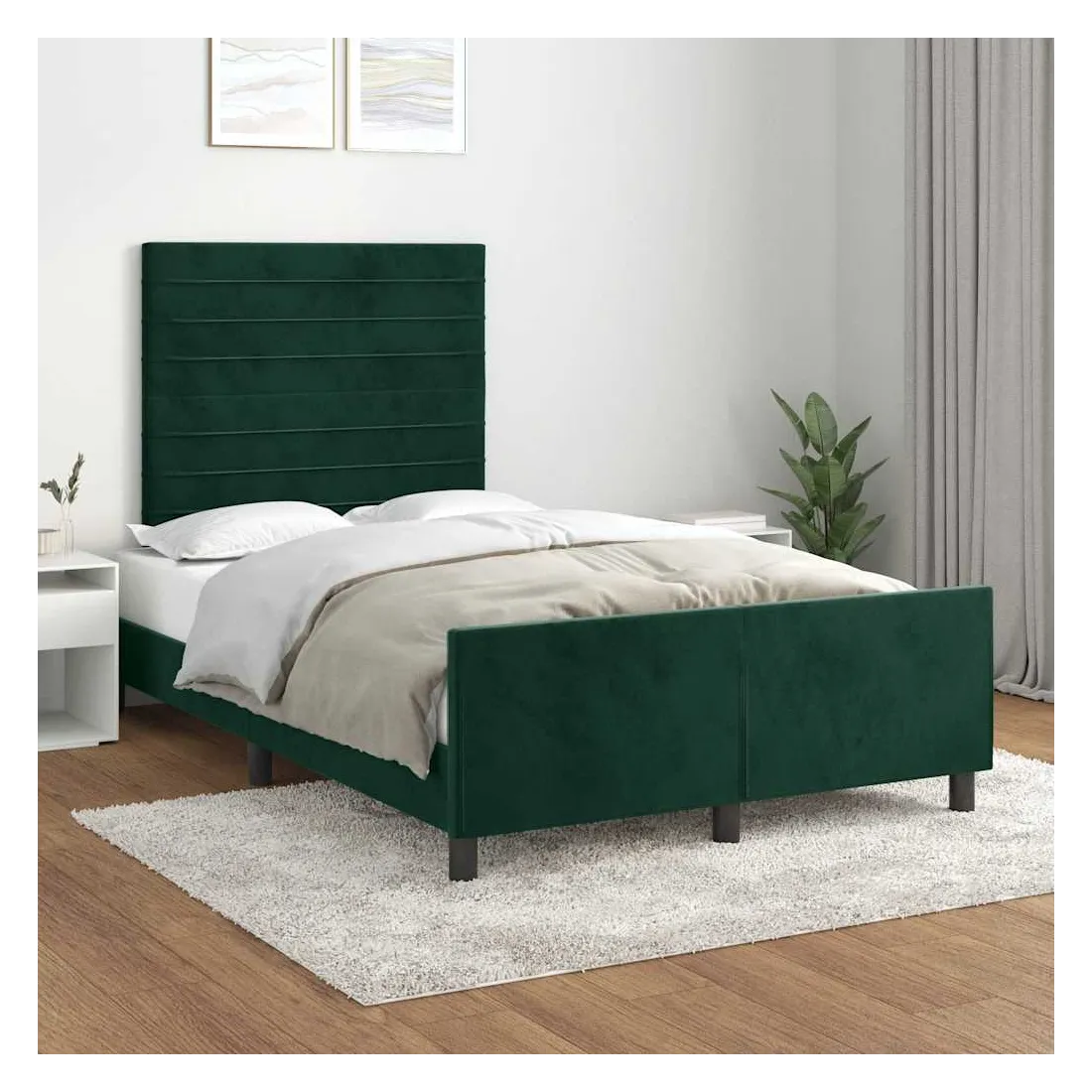 Cadre de lit sans matelas vert foncé 120x190 cm velours