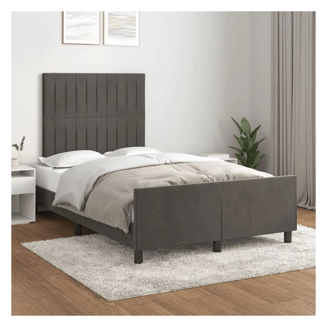 Obtenez une meilleure nuit de sommeil reposante grâce à ce cadre de lit avec tête de lit ! Il est un supplément accueillant à toute chambre à coucher. Velours doux : le velours est un tissu doux et luxueux qui se reconnaît à son tas dense de fibres uniformément coupées qui ont une touche lisse. Le tissu en velours présente un toucher doux distinctif, ce qui le rend confortable au toucher.Hauteur réglable : la tête de lit est réglable en hauteur selon vos préférences.Pieds de soutien : le lit est soutenu par des pieds robustes, qui assurent sa stabilité, sa sécurité et sa fermeté.Lattes de contreplaqué : les lattes de contreplaqué assurent une bonne répartition du poids, garantissant que le matelas reste en place à chaque torsion de votre corps pendant le sommeil.Excellent soutien : la tête de lit vous offre un excellent soutien du dos lorsque vous êtes assis dans votre lit pour lire ou regarder la télévision. Bon à savoir :La livraison comprend uniquement un cadre de lit. Le matelas n'est pas inclus. Vous pouvez consulter notre boutique pour trouver les matelas assortis.