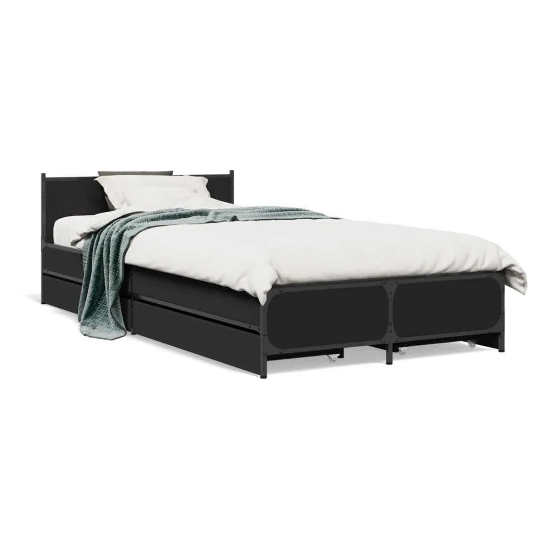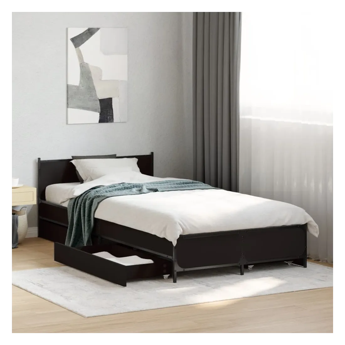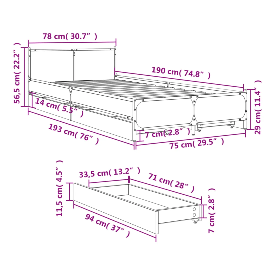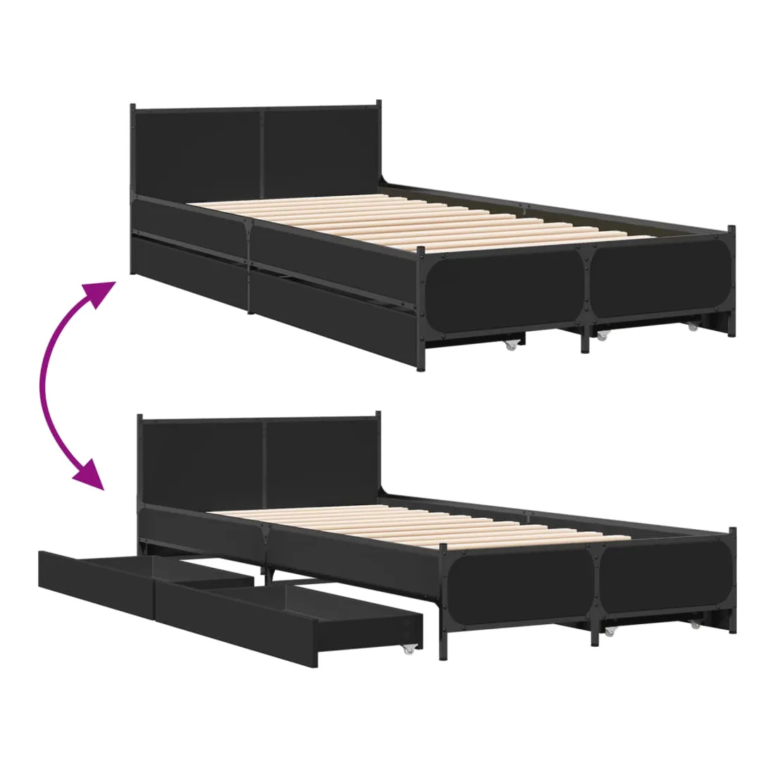Obtenez une meilleure nuit de sommeil reposante grâce à ce cadre de lit avec tiroirs ! Il est un supplément accueillant à toute chambre à coucher. Matériau durable : le bois d'ingénierie est d'une qualité exceptionnelle avec une surface lisse et présente également résistance, stabilité et résistance à l'humidité. Pieds en métal : le lit est soutenu par des pieds en métal robustes, qui assurent sa stabilité, sa sécurité et sa fermeté. Lattes de contreplaqué : les lattes de contreplaqué assurent une bonne répartition du poids, garantissant que le matelas reste en place à chaque torsion de votre corps pendant le sommeil. Fonction de rangement : les tiroirs de lit inclus offrent suffisamment d'espace de rangement pour ranger vos articles essentiels, gardant votre pièce propre et bien rangée. Bon à savoir :Un matelas n'est pas inclus avec ce lit. Nous offrons une sélection variée de matelas. Vous pouvez consulter notre boutique pour trouver un matelas assorti.