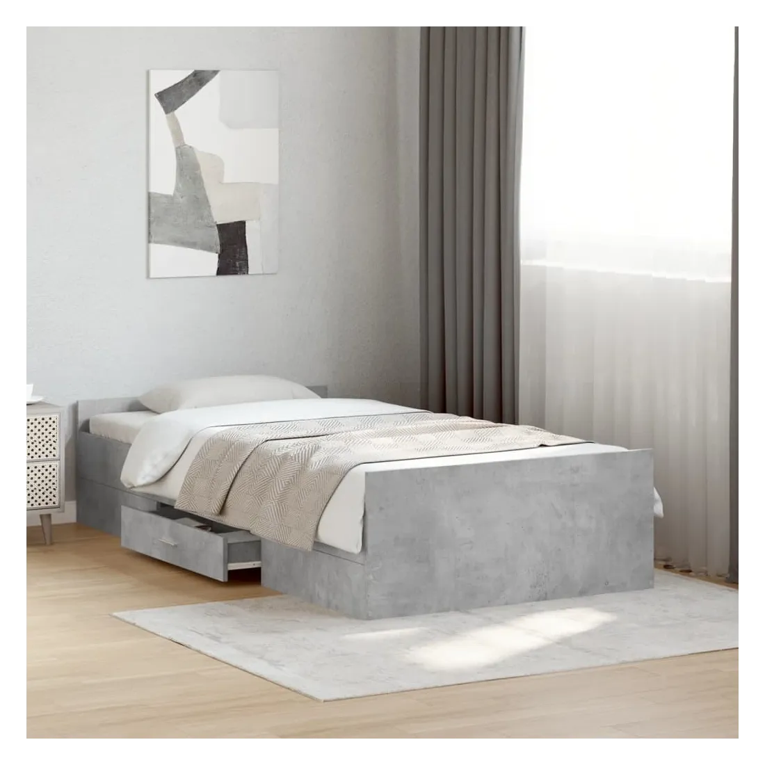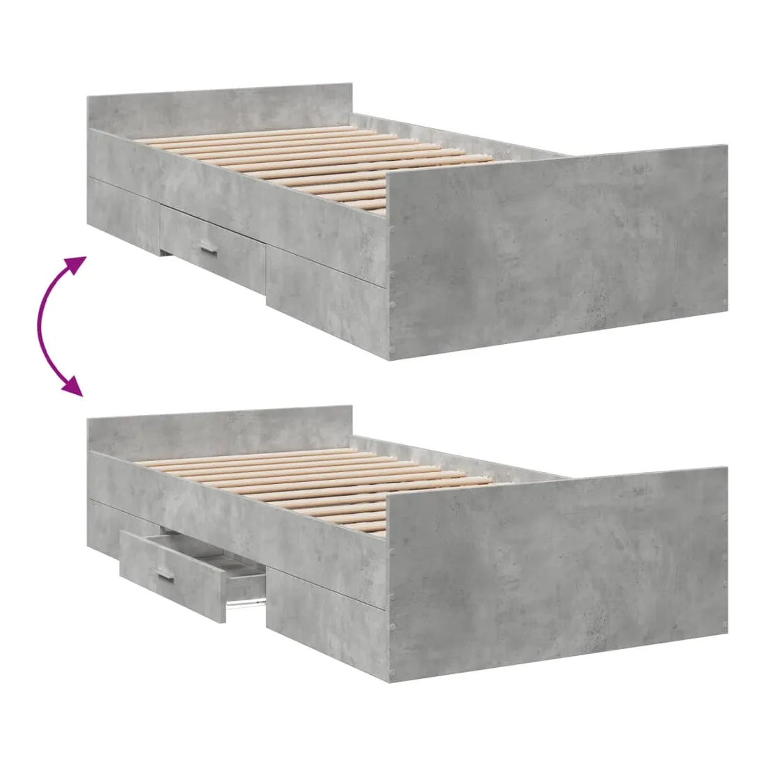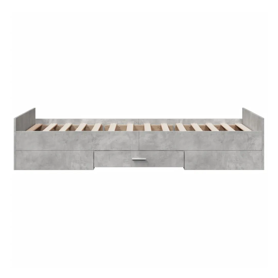 Ajoutez une touche moderne à votre chambre à coucher avec ce cadre de lit avec tiroirs ! Il apportera une touche pratique et décorative à votre espace de vie. Matériau durable : le cadre de lit est fabriquée en bois d'ingénierie. Le bois d'ingénierie est d'une qualité exceptionnelle avec une surface lisse et présente également de la résistance, de la stabilité et de la résistance à l'humidité.Lattes robustes : les lattes de contreplaqué assurent une bonne répartition du poids, garantissant que le matelas reste en place à chaque torsion de votre corps pendant le sommeil.Fonction de rangement : les tiroirs de lit inclus offrent suffisamment d'espace de rangement pour ranger vos articles essentiels, gardant votre pièce propre et bien rangée. Bon à savoir :Un matelas n'est pas inclus avec ce lit. Nous offrons une sélection variée de matelas. Vous pouvez consulter notre boutique pour trouver un matelas assorti.