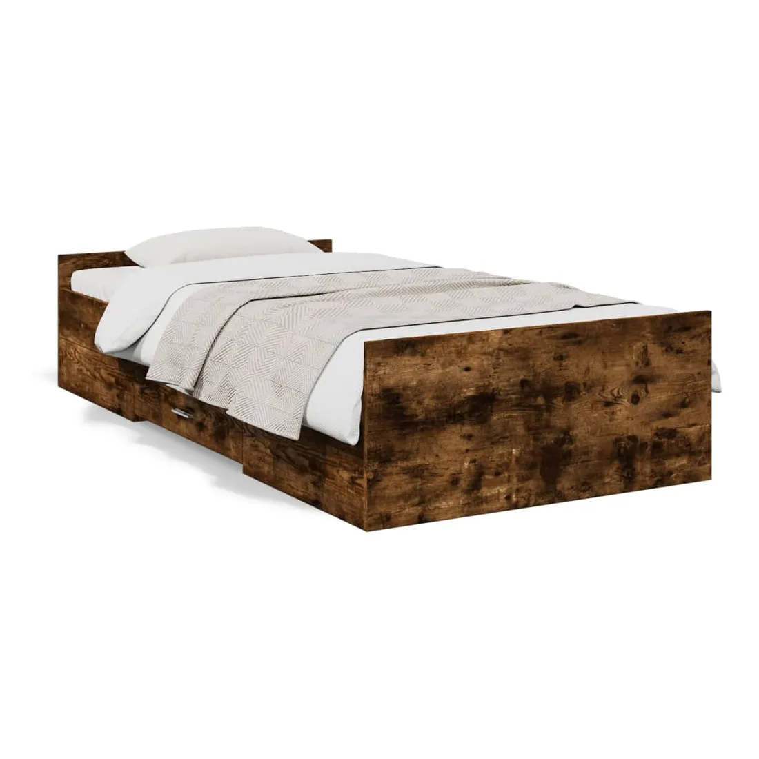 Ajoutez une touche moderne à votre chambre à coucher avec ce cadre de lit avec tiroirs ! Il apportera une touche pratique et décorative à votre espace de vie. Matériau durable : le cadre de lit est fabriquée en bois d'ingénierie. Le bois d'ingénierie est d'une qualité exceptionnelle avec une surface lisse et présente également de la résistance, de la stabilité et de la résistance à l'humidité.Lattes robustes : les lattes de contreplaqué assurent une bonne répartition du poids, garantissant que le matelas reste en place à chaque torsion de votre corps pendant le sommeil.Fonction de rangement : les tiroirs de lit inclus offrent suffisamment d'espace de rangement pour ranger vos articles essentiels, gardant votre pièce propre et bien rangée. Bon à savoir :Un matelas n'est pas inclus avec ce lit. Nous offrons une sélection variée de matelas. Vous pouvez consulter notre boutique pour trouver un matelas assorti.