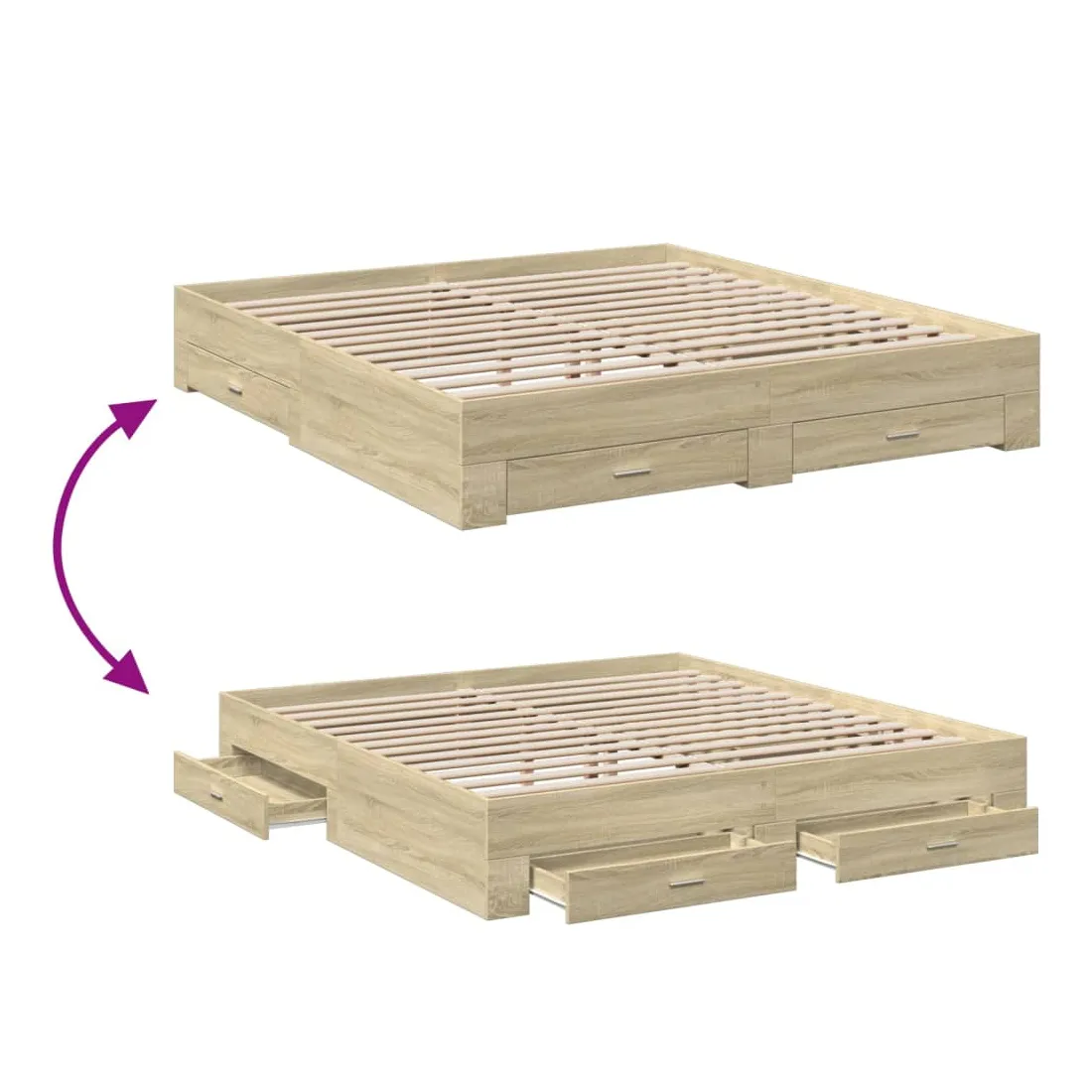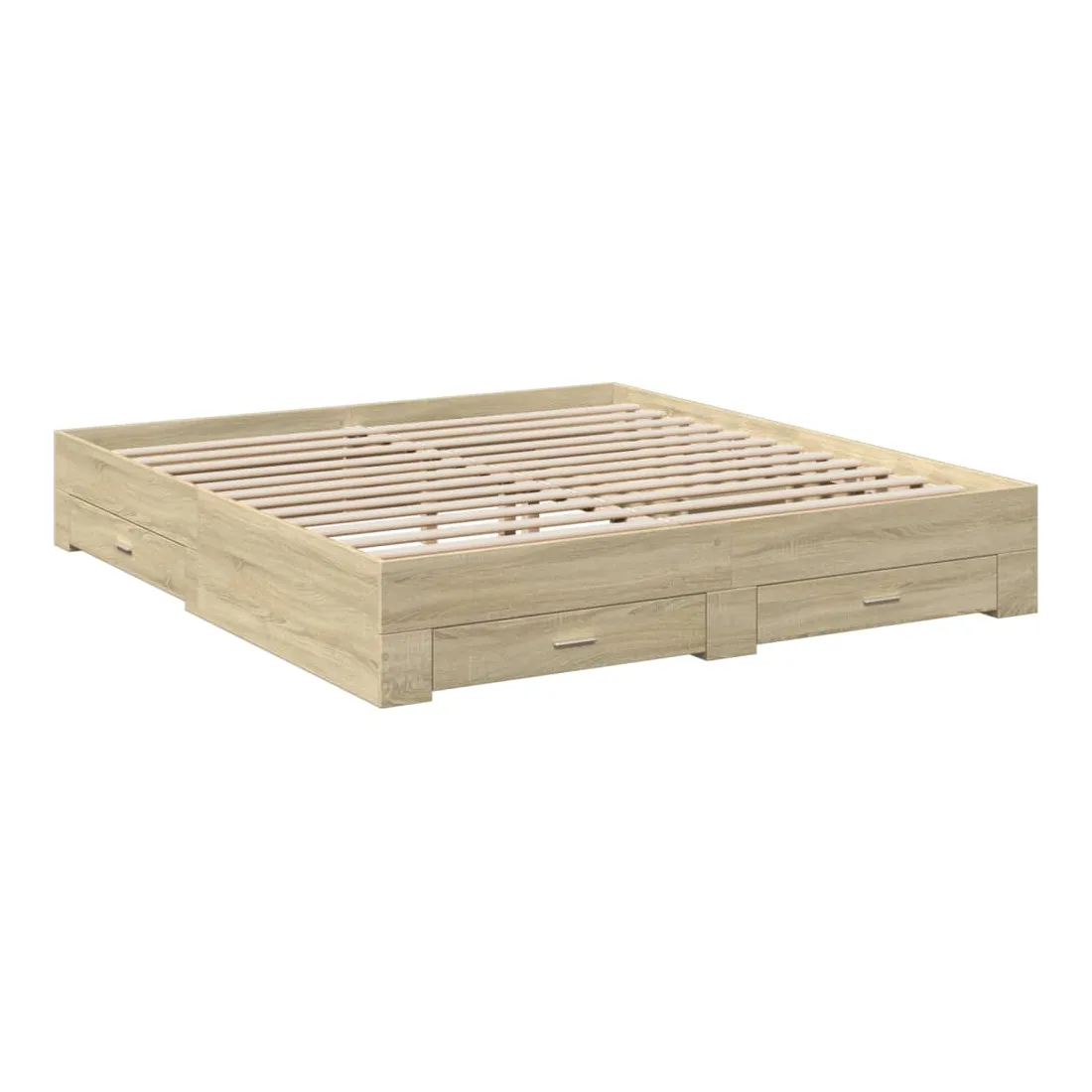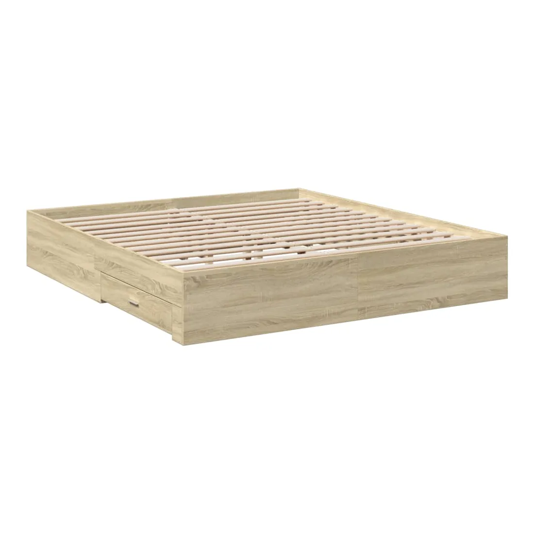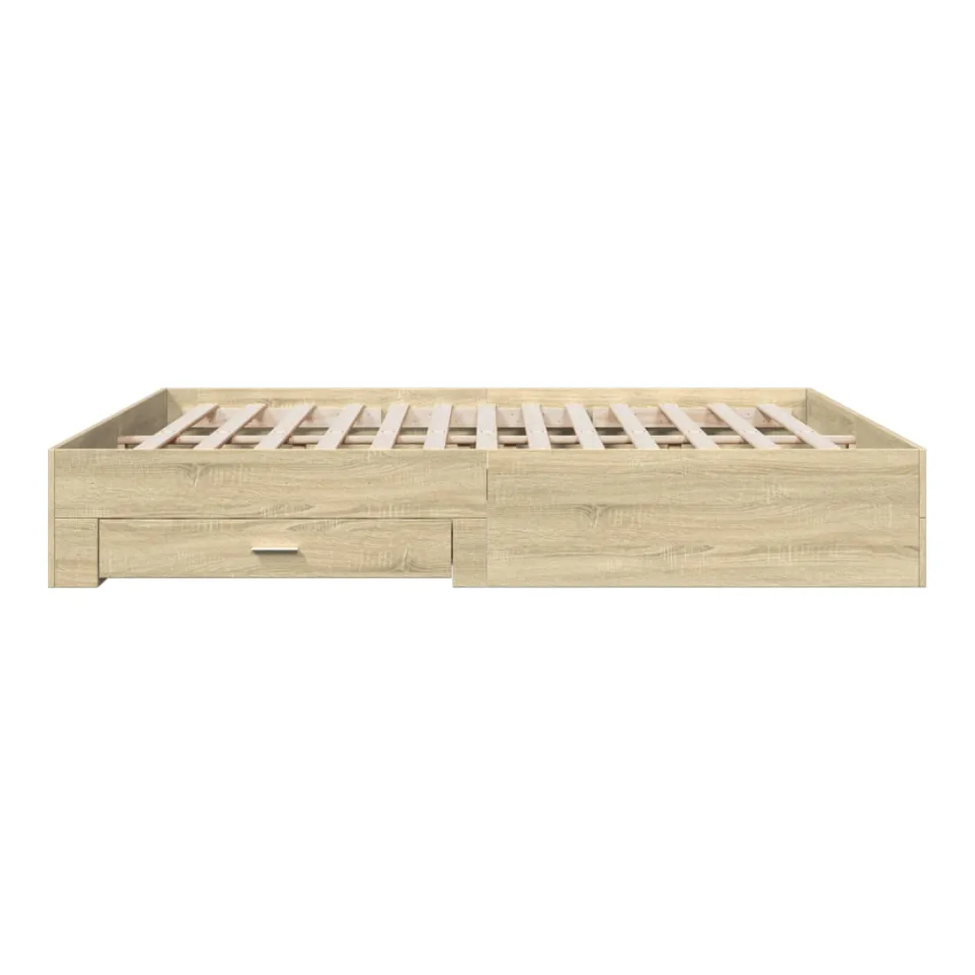 Ajoutez une touche moderne à votre chambre à coucher avec ce cadre de lit avec tiroirs ! Il apportera une touche pratique et décorative à votre espace de vie. Matériau durable : le cadre de lit est fabriquée en bois d'ingénierie. Le bois d'ingénierie est d'une qualité exceptionnelle avec une surface lisse et présente également de la résistance, de la stabilité et de la résistance à l'humidité.Lattes robustes : les lattes de contreplaqué assurent une bonne répartition du poids, garantissant que le matelas reste en place à chaque torsion de votre corps pendant le sommeil.Fonction de rangement : les tiroirs de lit inclus offrent suffisamment d'espace de rangement pour ranger vos articles essentiels, gardant votre pièce propre et bien rangée. Bon à savoir :Un matelas n'est pas inclus avec ce lit. Nous offrons une sélection variée de matelas. Vous pouvez consulter notre boutique pour trouver un matelas assorti.
