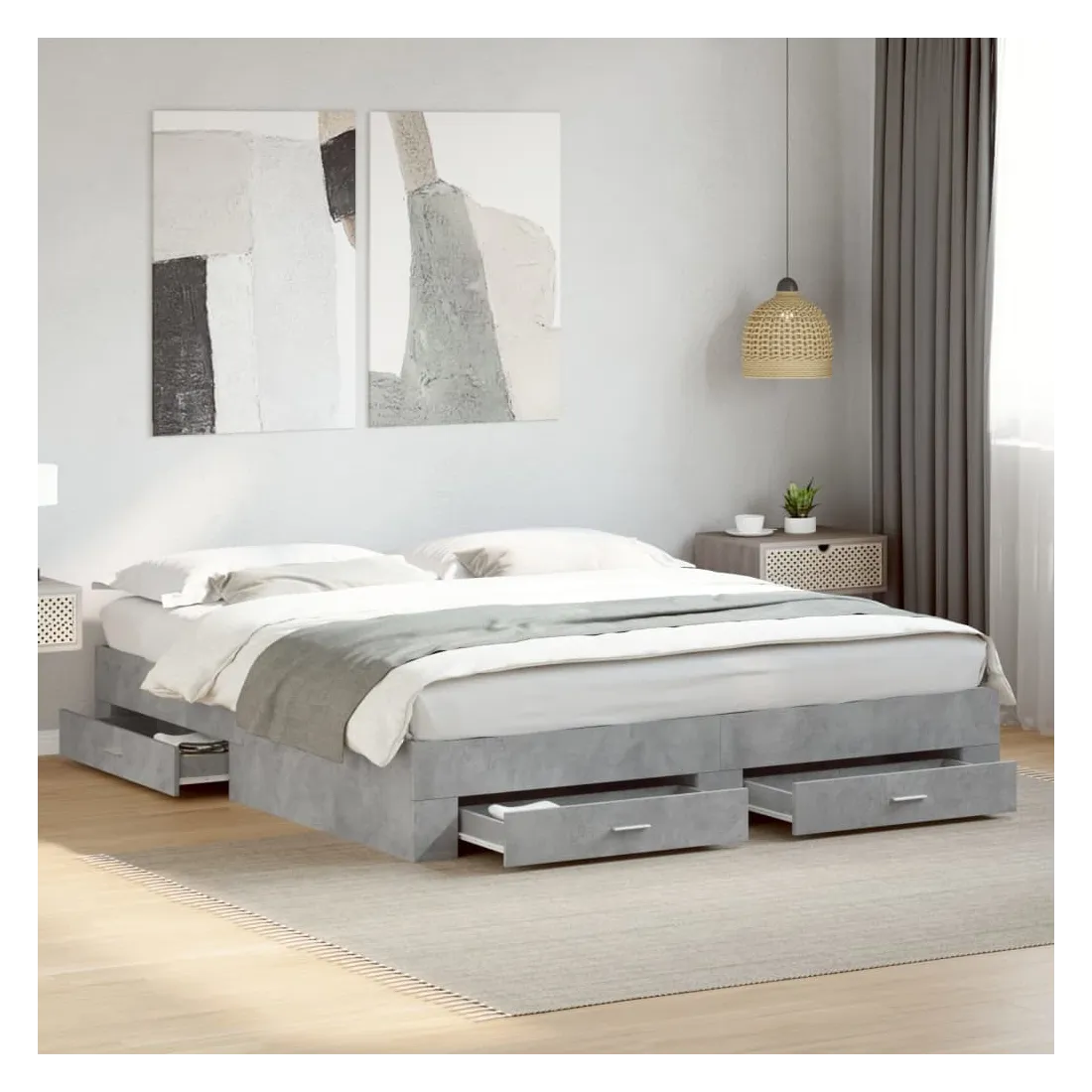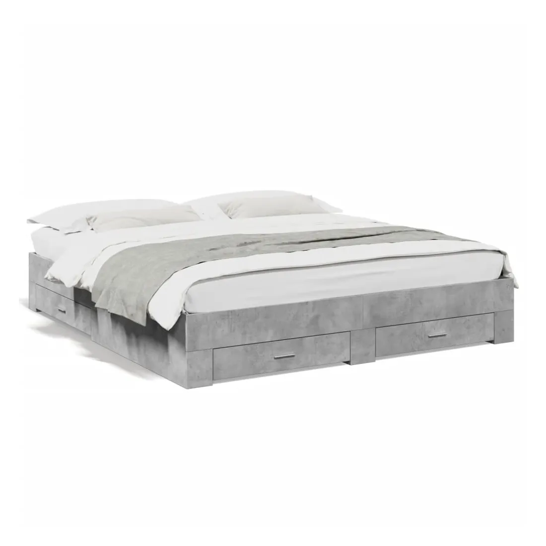 Ajoutez une touche moderne à votre chambre à coucher avec ce cadre de lit avec tiroirs ! Il apportera une touche pratique et décorative à votre espace de vie. Matériau durable : le cadre de lit est fabriquée en bois d'ingénierie. Le bois d'ingénierie est d'une qualité exceptionnelle avec une surface lisse et présente également de la résistance, de la stabilité et de la résistance à l'humidité.Lattes robustes : les lattes de contreplaqué assurent une bonne répartition du poids, garantissant que le matelas reste en place à chaque torsion de votre corps pendant le sommeil.Fonction de rangement : les tiroirs de lit inclus offrent suffisamment d'espace de rangement pour ranger vos articles essentiels, gardant votre pièce propre et bien rangée. Bon à savoir :Un matelas n'est pas inclus avec ce lit. Nous offrons une sélection variée de matelas. Vous pouvez consulter notre boutique pour trouver un matelas assorti.