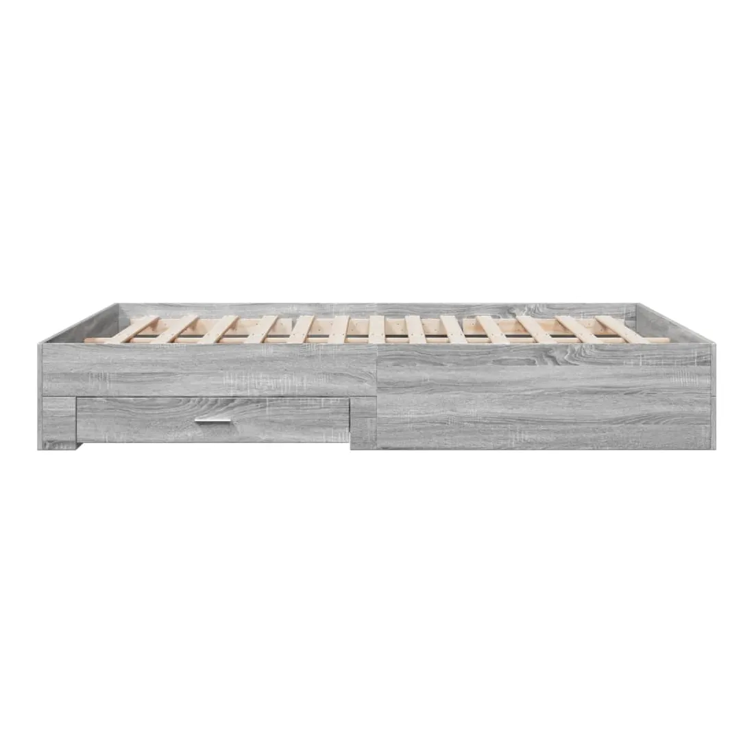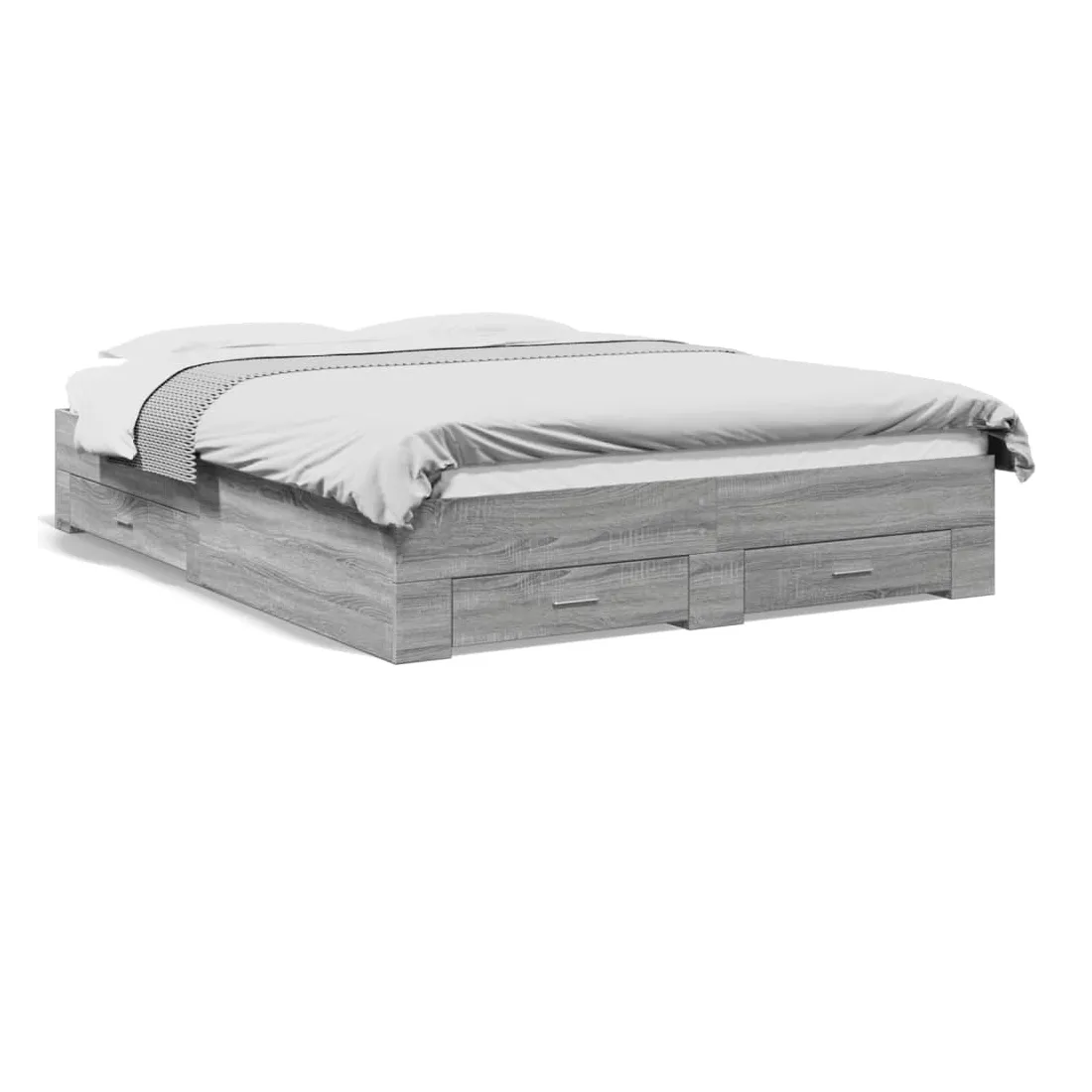 Ajoutez une touche moderne à votre chambre à coucher avec ce cadre de lit avec tiroirs ! Il apportera une touche pratique et décorative à votre espace de vie. Matériau durable : le cadre de lit est fabriquée en bois d'ingénierie. Le bois d'ingénierie est d'une qualité exceptionnelle avec une surface lisse et présente également de la résistance, de la stabilité et de la résistance à l'humidité.Lattes robustes : les lattes de contreplaqué assurent une bonne répartition du poids, garantissant que le matelas reste en place à chaque torsion de votre corps pendant le sommeil.Fonction de rangement : les tiroirs de lit inclus offrent suffisamment d'espace de rangement pour ranger vos articles essentiels, gardant votre pièce propre et bien rangée. Bon à savoir :Un matelas n'est pas inclus avec ce lit. Nous offrons une sélection variée de matelas. Vous pouvez consulter notre boutique pour trouver un matelas assorti.