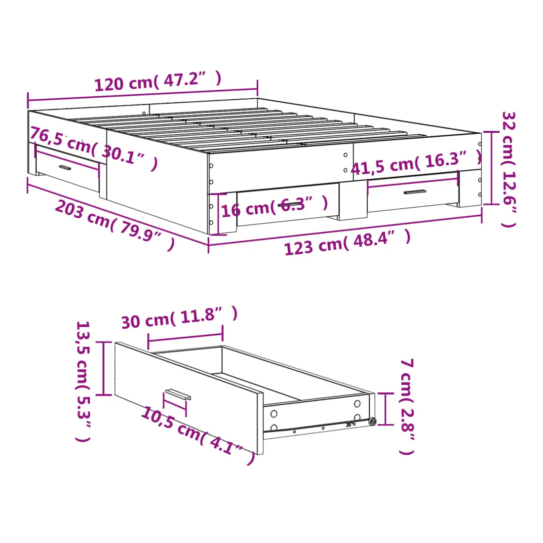 Ajoutez une touche moderne à votre chambre à coucher avec ce cadre de lit avec tiroirs ! Il apportera une touche pratique et décorative à votre espace de vie. Matériau durable : le cadre de lit est fabriquée en bois d'ingénierie. Le bois d'ingénierie est d'une qualité exceptionnelle avec une surface lisse et présente également de la résistance, de la stabilité et de la résistance à l'humidité.Lattes robustes : les lattes de contreplaqué assurent une bonne répartition du poids, garantissant que le matelas reste en place à chaque torsion de votre corps pendant le sommeil.Fonction de rangement : les tiroirs de lit inclus offrent suffisamment d'espace de rangement pour ranger vos articles essentiels, gardant votre pièce propre et bien rangée. Bon à savoir :Un matelas n'est pas inclus avec ce lit. Nous offrons une sélection variée de matelas. Vous pouvez consulter notre boutique pour trouver un matelas assorti.