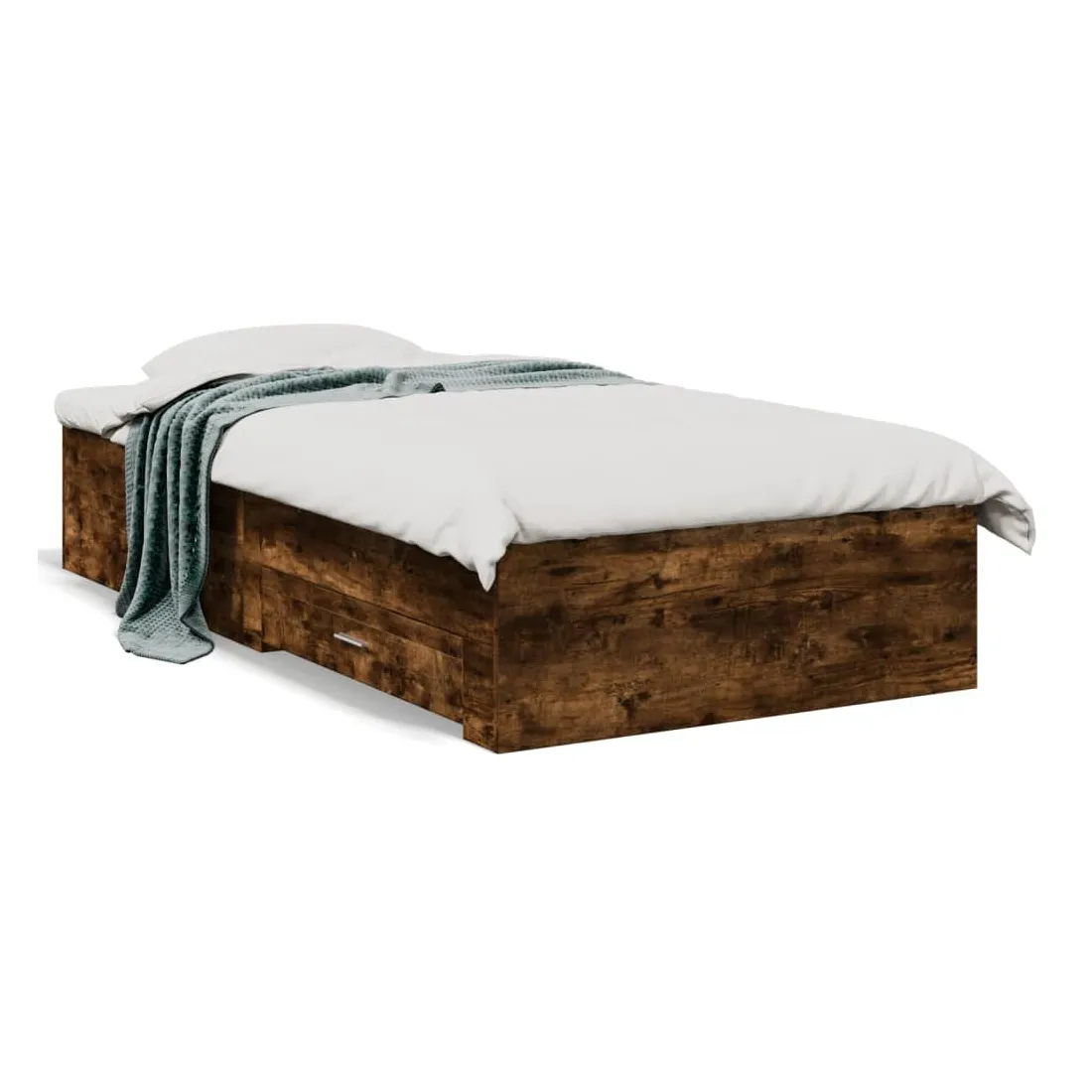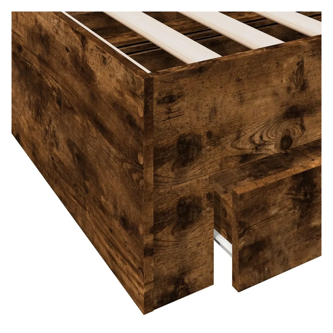Ajoutez une touche moderne à votre chambre à coucher avec ce cadre de lit avec tiroirs ! Il apportera une touche pratique et décorative à votre espace de vie. Matériau durable : le cadre de lit est fabriquée en bois d'ingénierie. Le bois d'ingénierie est d'une qualité exceptionnelle avec une surface lisse et présente également de la résistance, de la stabilité et de la résistance à l'humidité.Lattes robustes : les lattes de contreplaqué assurent une bonne répartition du poids, garantissant que le matelas reste en place à chaque torsion de votre corps pendant le sommeil.Fonction de rangement : les tiroirs de lit inclus offrent suffisamment d'espace de rangement pour ranger vos articles essentiels, gardant votre pièce propre et bien rangée. Bon à savoir :Un matelas n'est pas inclus avec ce lit. Nous offrons une sélection variée de matelas. Vous pouvez consulter notre boutique pour trouver un matelas assorti.