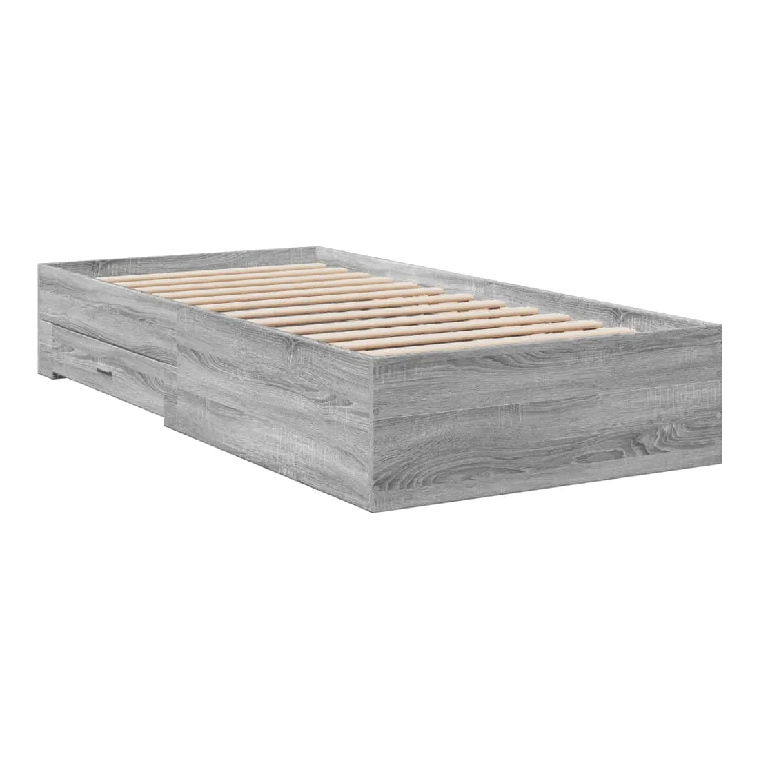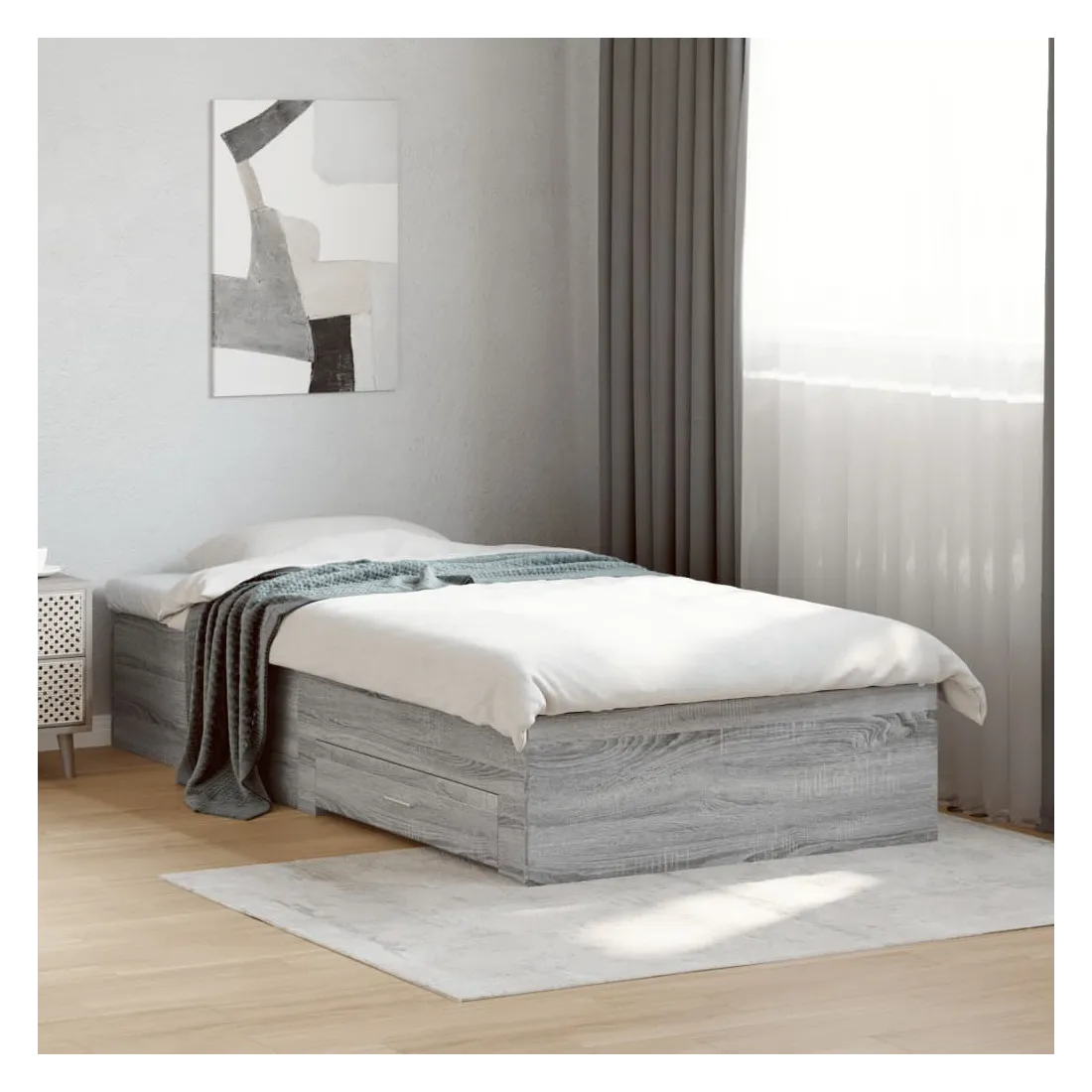Ajoutez une touche moderne à votre chambre à coucher avec ce cadre de lit avec tiroirs ! Il apportera une touche pratique et décorative à votre espace de vie. Matériau durable : le cadre de lit est fabriquée en bois d'ingénierie. Le bois d'ingénierie est d'une qualité exceptionnelle avec une surface lisse et présente également de la résistance, de la stabilité et de la résistance à l'humidité.Lattes robustes : les lattes de contreplaqué assurent une bonne répartition du poids, garantissant que le matelas reste en place à chaque torsion de votre corps pendant le sommeil.Fonction de rangement : les tiroirs de lit inclus offrent suffisamment d'espace de rangement pour ranger vos articles essentiels, gardant votre pièce propre et bien rangée. Bon à savoir :Un matelas n'est pas inclus avec ce lit. Nous offrons une sélection variée de matelas. Vous pouvez consulter notre boutique pour trouver un matelas assorti.
