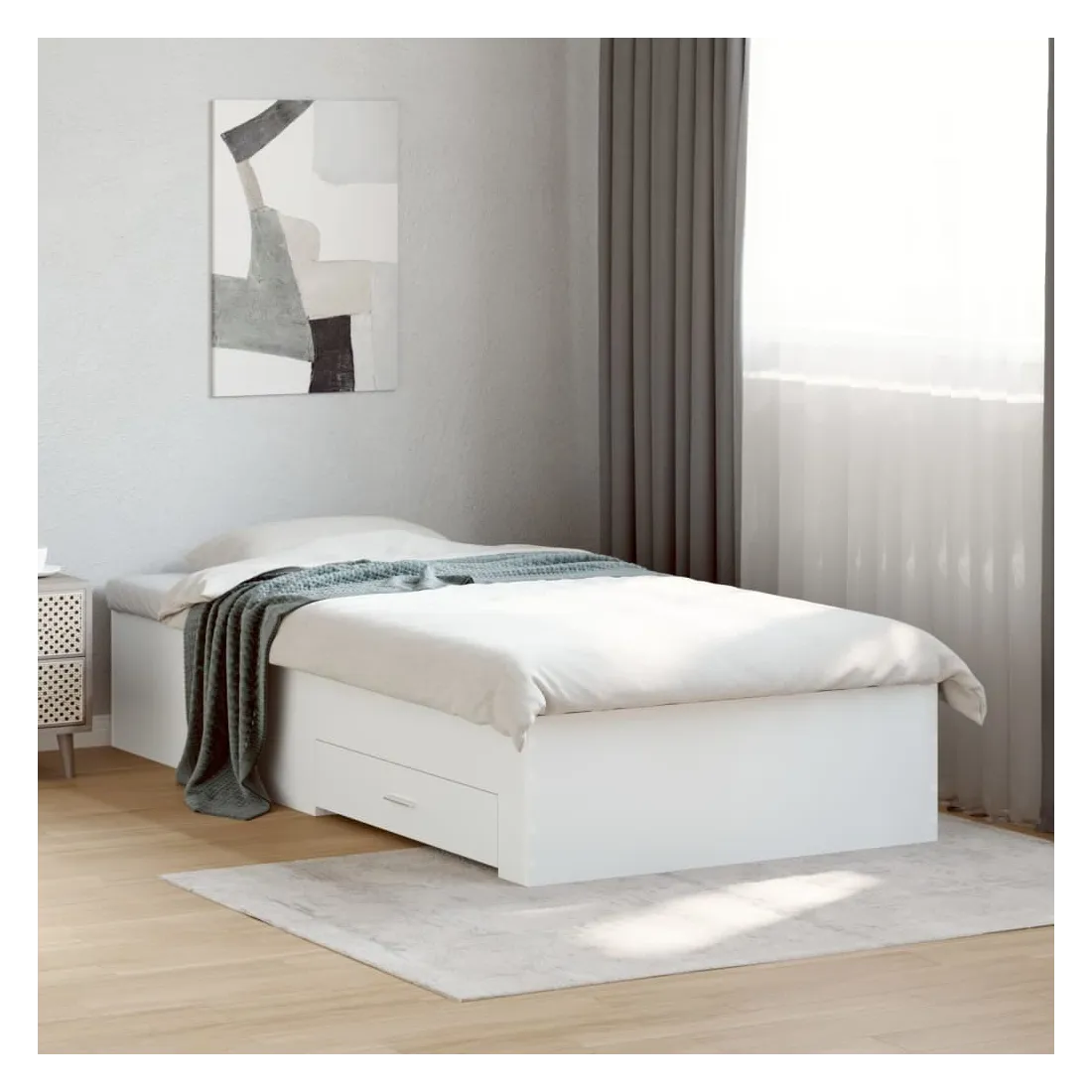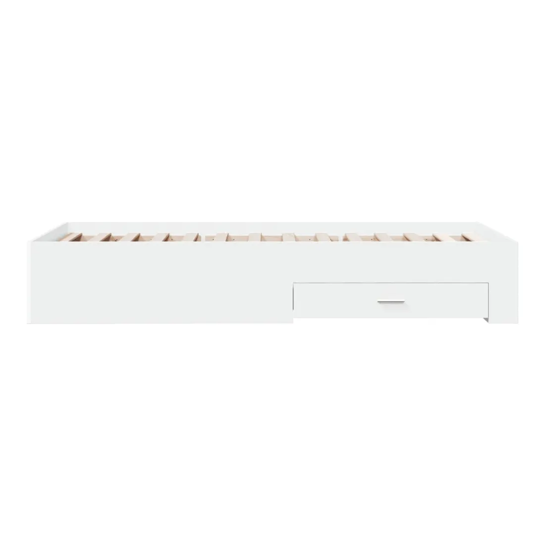 Ajoutez une touche moderne à votre chambre à coucher avec ce cadre de lit avec tiroirs ! Il apportera une touche pratique et décorative à votre espace de vie. Matériau durable : le cadre de lit est fabriquée en bois d'ingénierie. Le bois d'ingénierie est d'une qualité exceptionnelle avec une surface lisse et présente également de la résistance, de la stabilité et de la résistance à l'humidité.Lattes robustes : les lattes de contreplaqué assurent une bonne répartition du poids, garantissant que le matelas reste en place à chaque torsion de votre corps pendant le sommeil.Fonction de rangement : les tiroirs de lit inclus offrent suffisamment d'espace de rangement pour ranger vos articles essentiels, gardant votre pièce propre et bien rangée. Bon à savoir :Un matelas n'est pas inclus avec ce lit. Nous offrons une sélection variée de matelas. Vous pouvez consulter notre boutique pour trouver un matelas assorti.